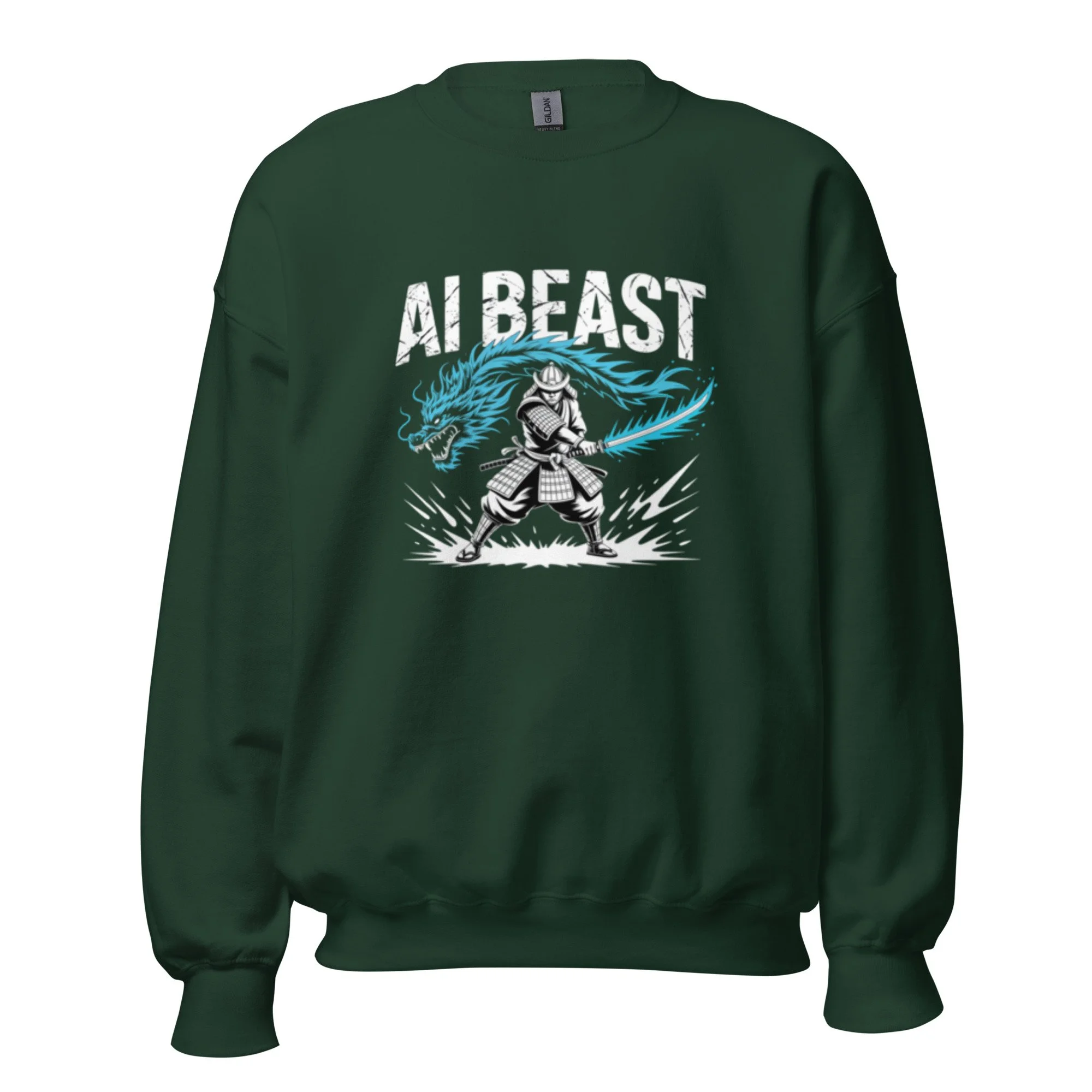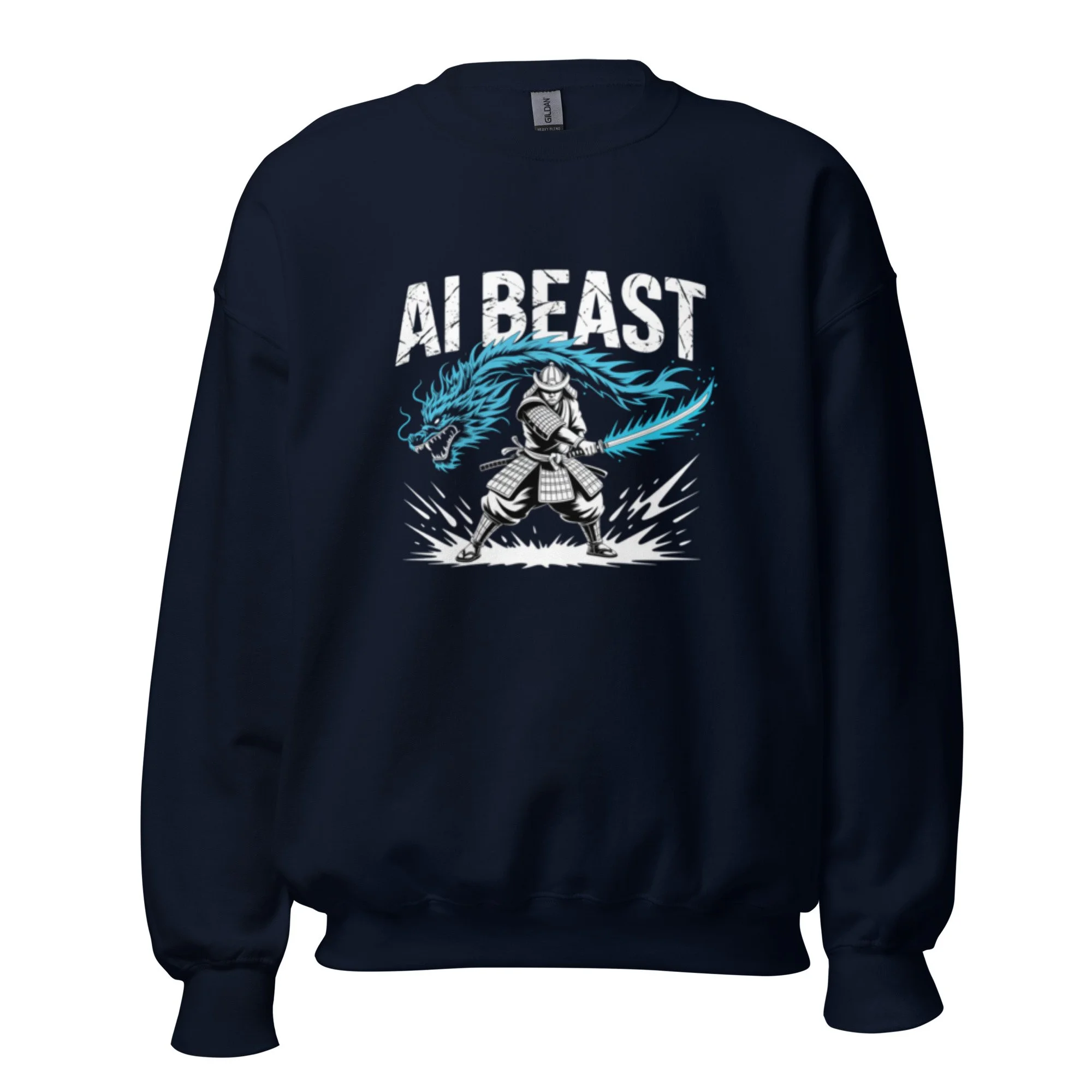 A masterclass in digital discipline, this design features a formidable samurai warrior channeling the spirit of a glowing cyan dragon. It is a sharp, authoritative centerpiece for the modern warrior within the AI clothing community. A sturdy and warm sweatshirt bound to keep you warm in the colder months. A pre-shrunk, classic fit sweater that’s made with air-jet spun yarn for a soft feel.