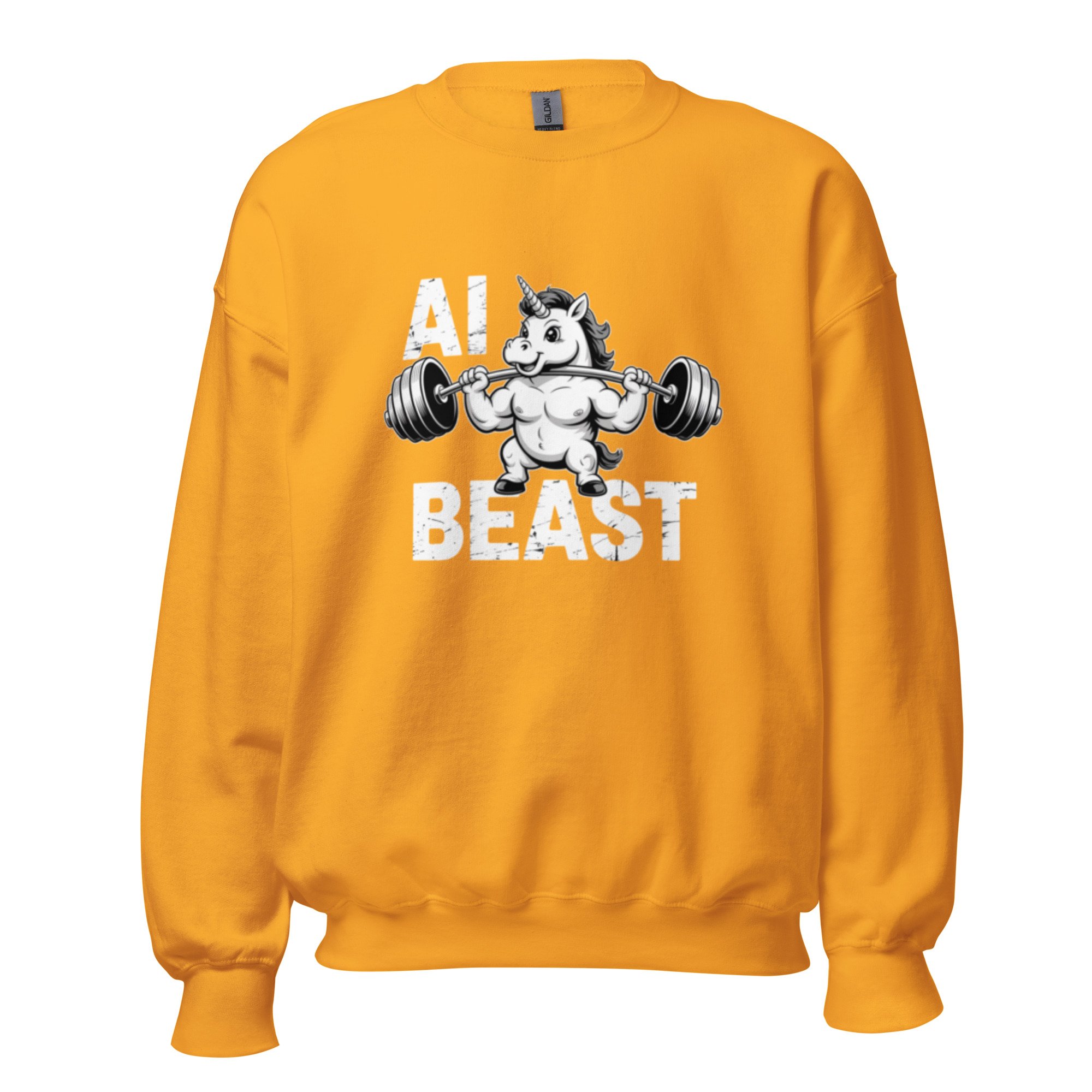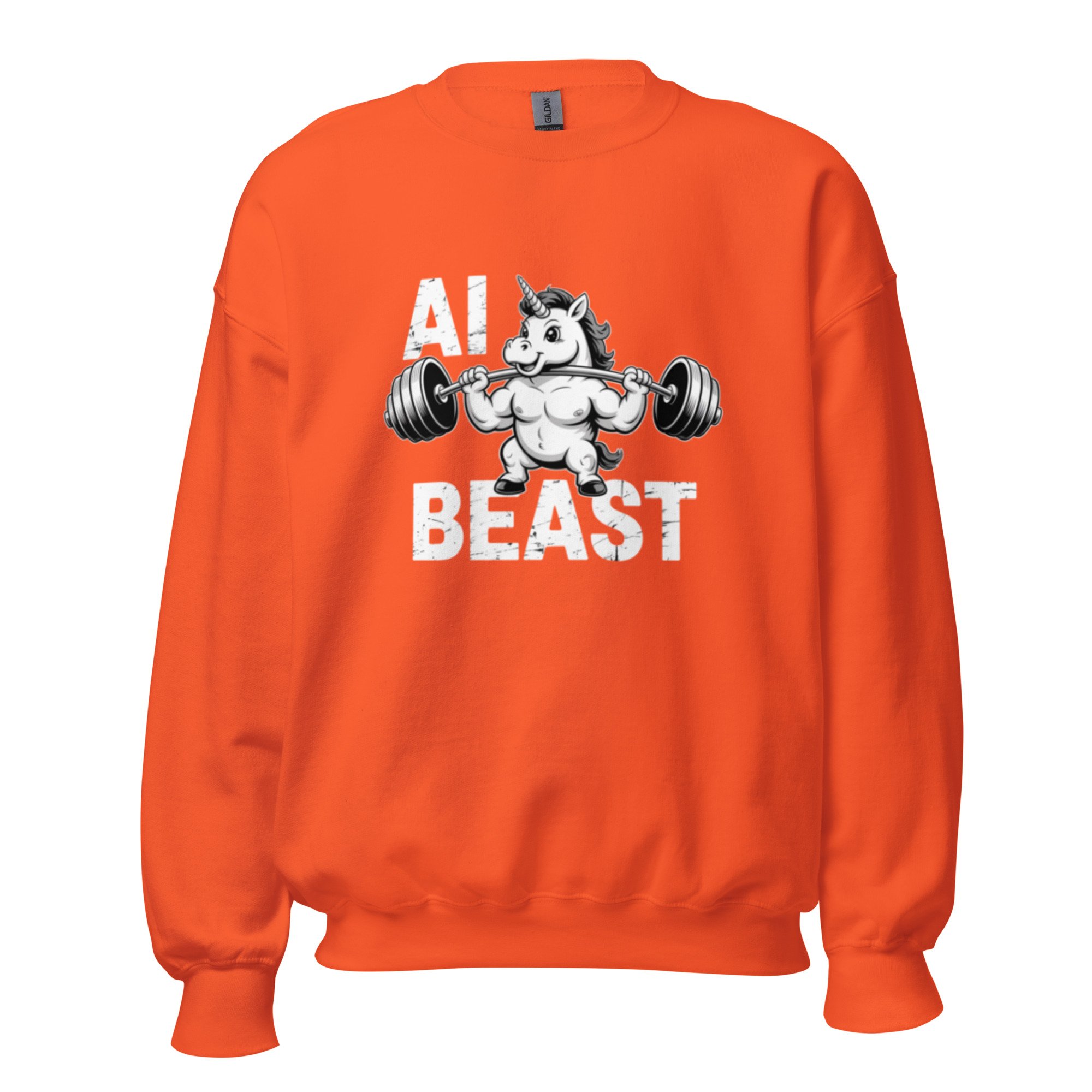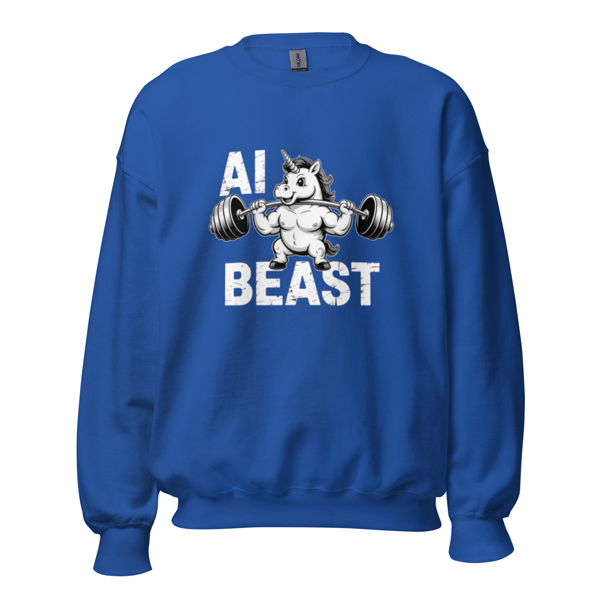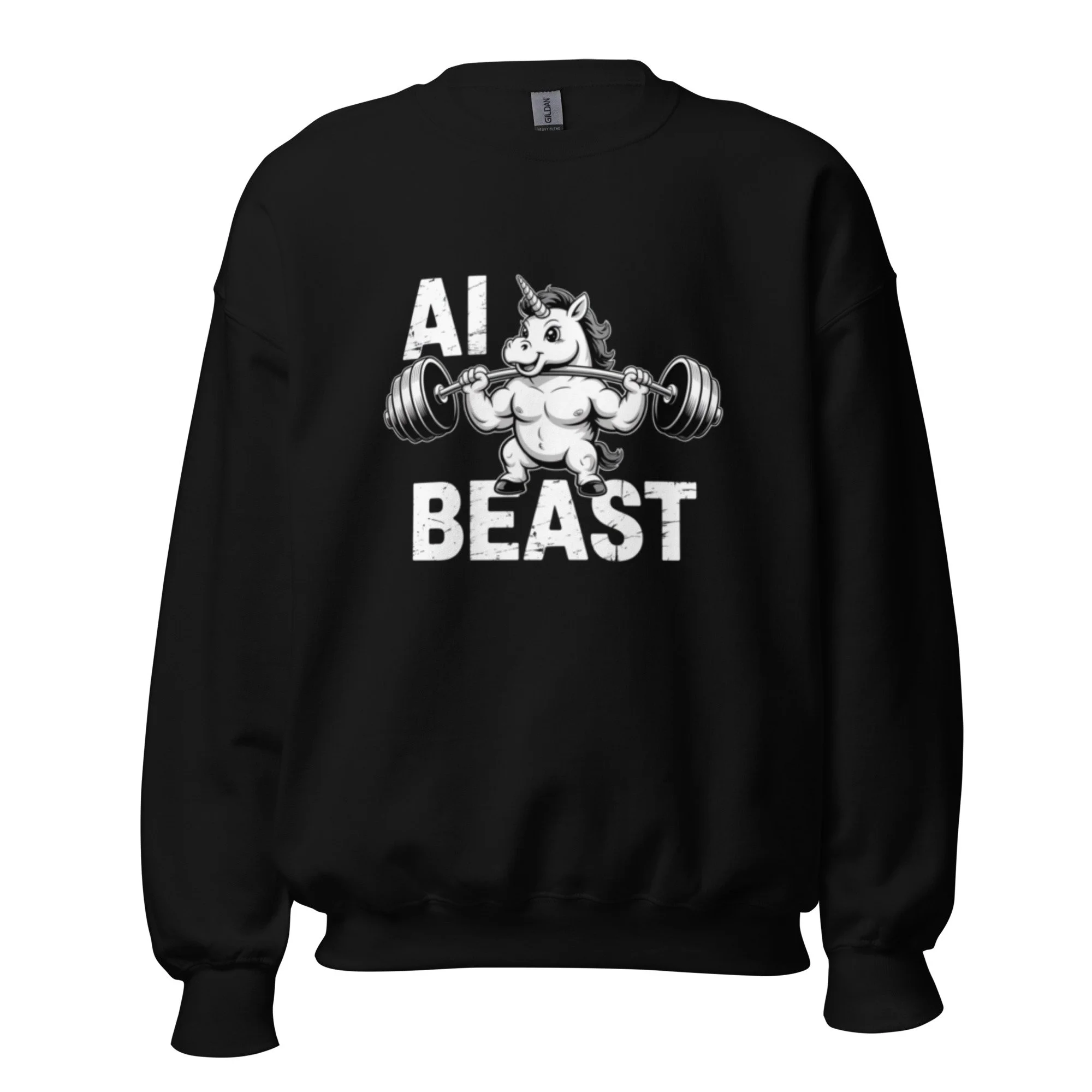 A muscular, weightlifting unicorn proves that even the most mythical beings have a "beast mode" in the digital age. This high-impact monochromatic design is a powerhouse addition to your AI clothing collection. A sturdy and warm sweatshirt bound to keep you warm in the colder months. A pre-shrunk, classic fit sweater that’s made with air-jet spun yarn for a soft feel.