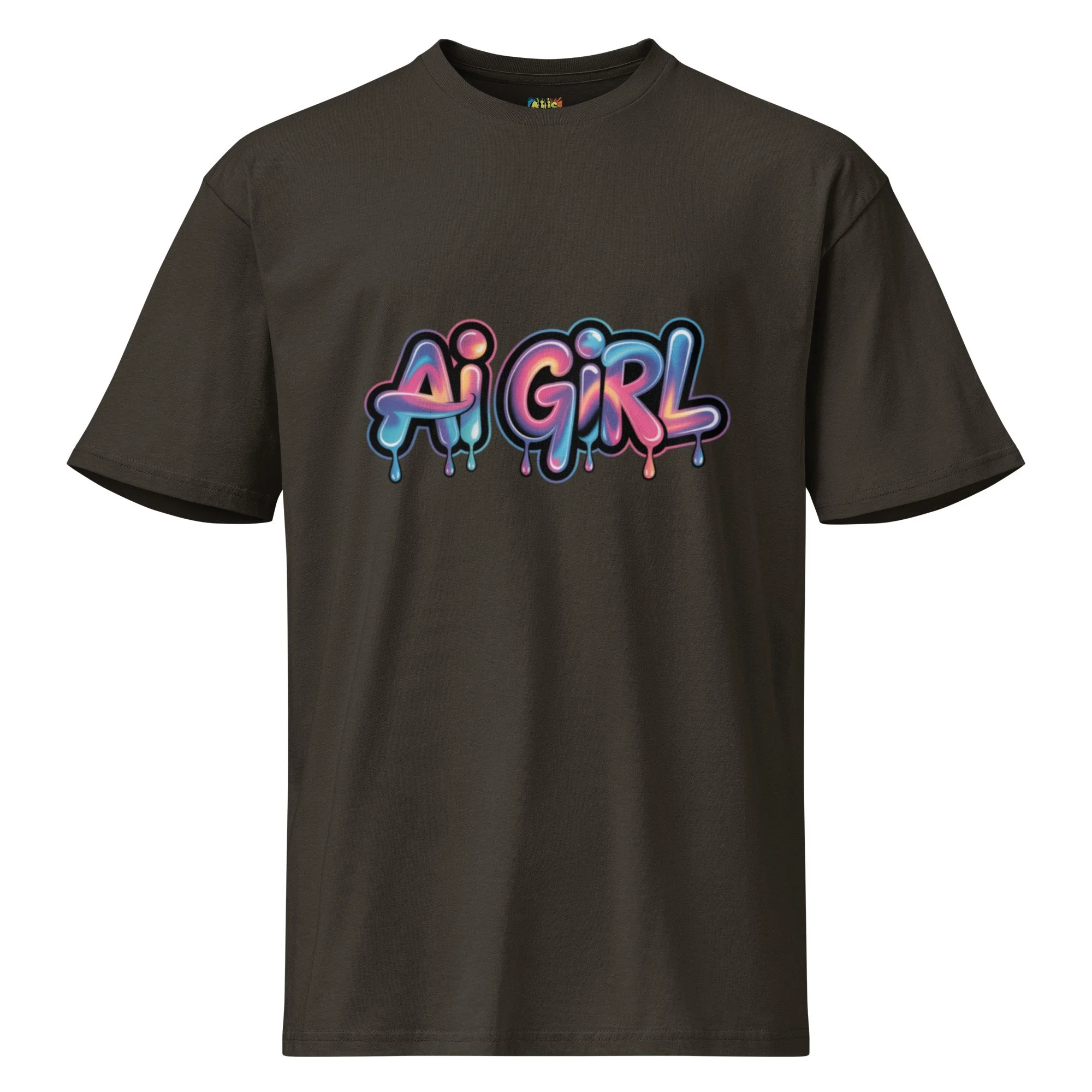 A vibrant, bubble-letter aesthetic meets a high-gloss digital finish. This design features "AI GIRL" in a fluid, melting gradient that drips with tech-infused style. It is a playful and polished addition to any modern AI clothing lineup. Want a tee that balances premium comfort with everyday versatility? Men’s Premium Short Sleeve Tee delivers a clean, classic fit with a soft yet durable feel. Designed with a smooth surface and reinforced construction, it’s perfect for daily wear, layering, and high-quality prints, a reliable go-to you’ll reach for again and again.