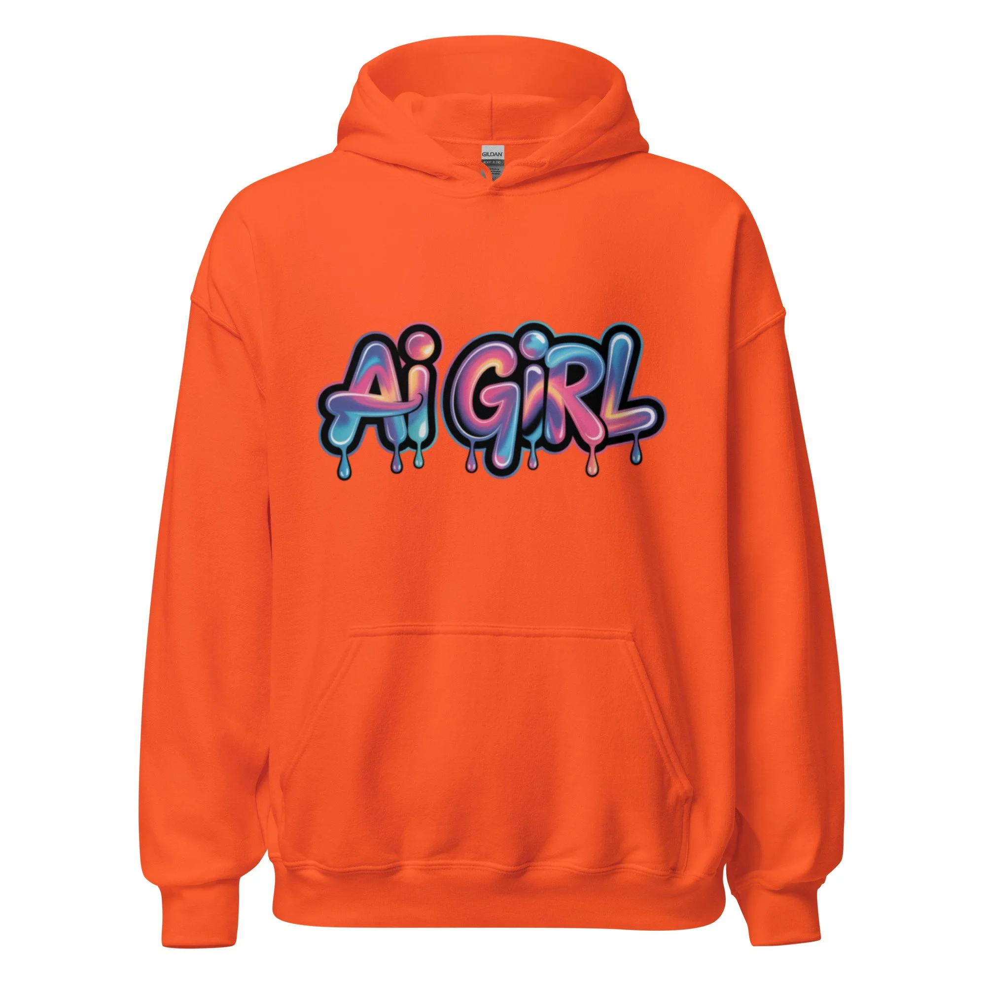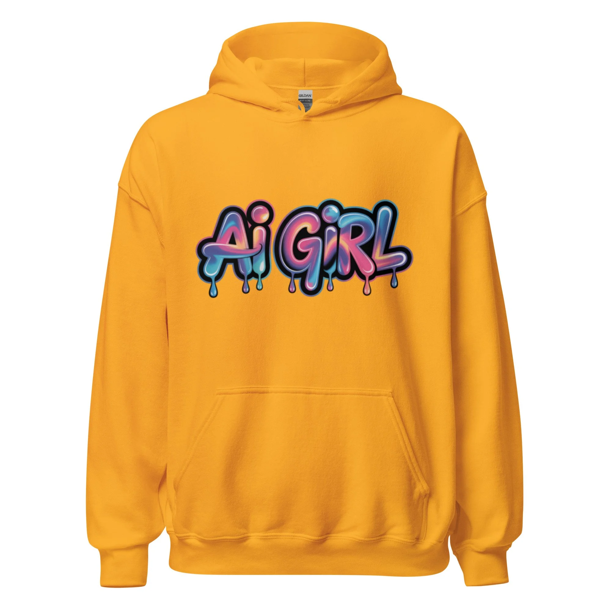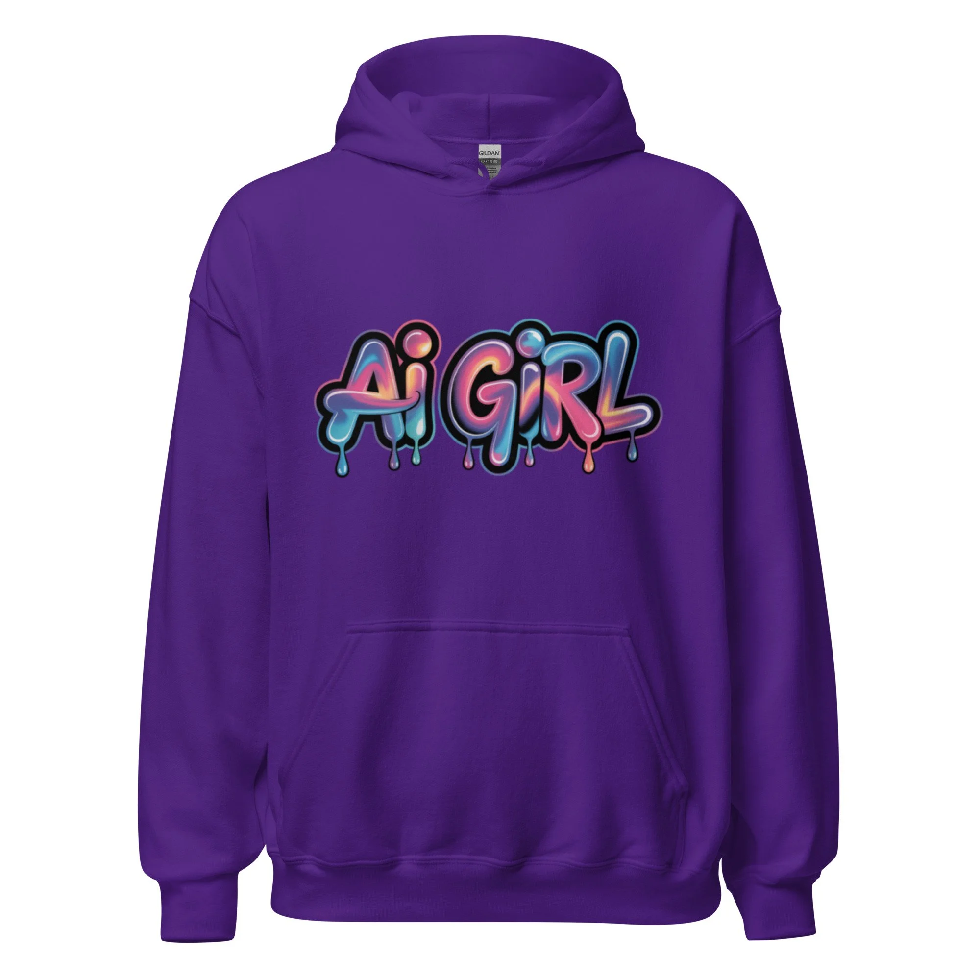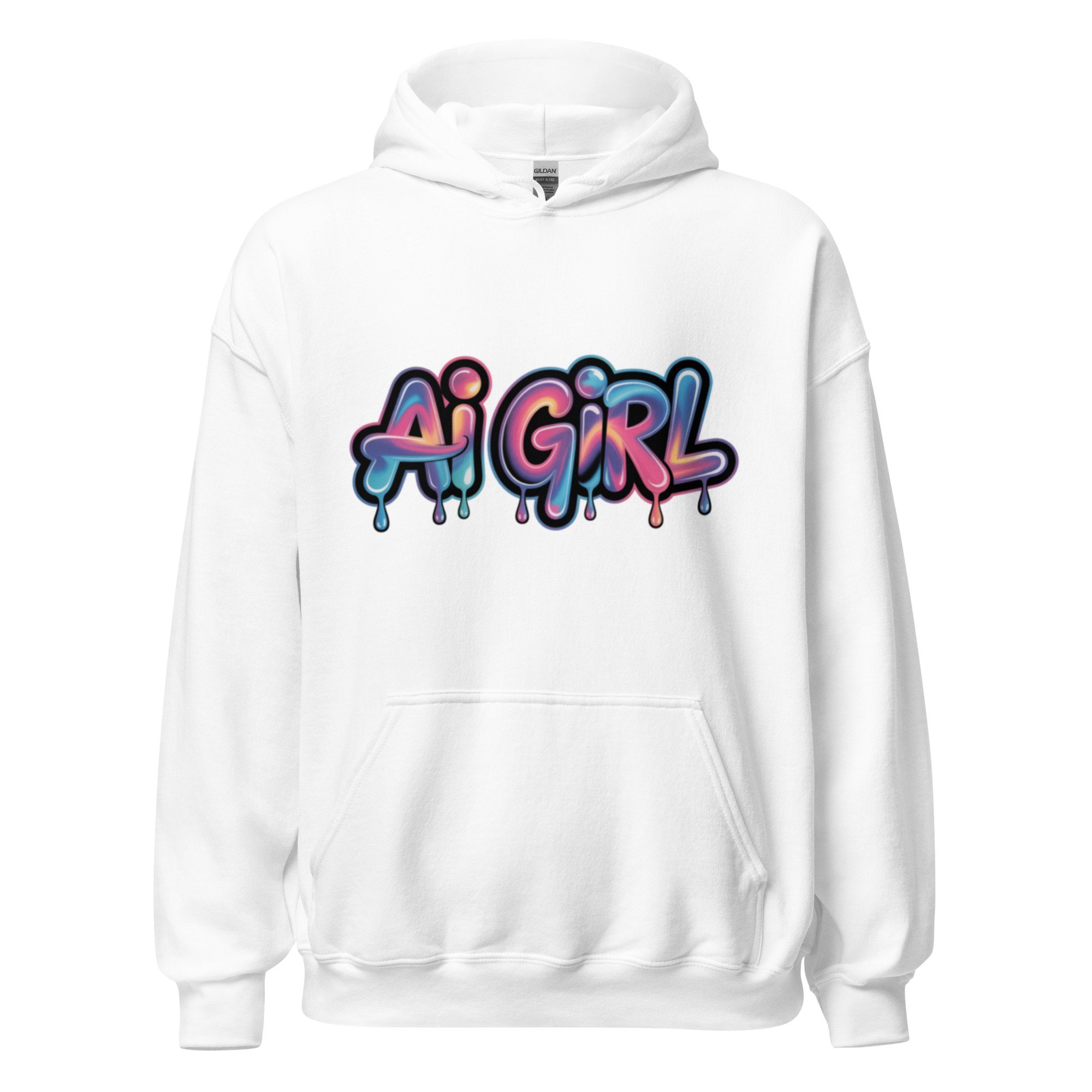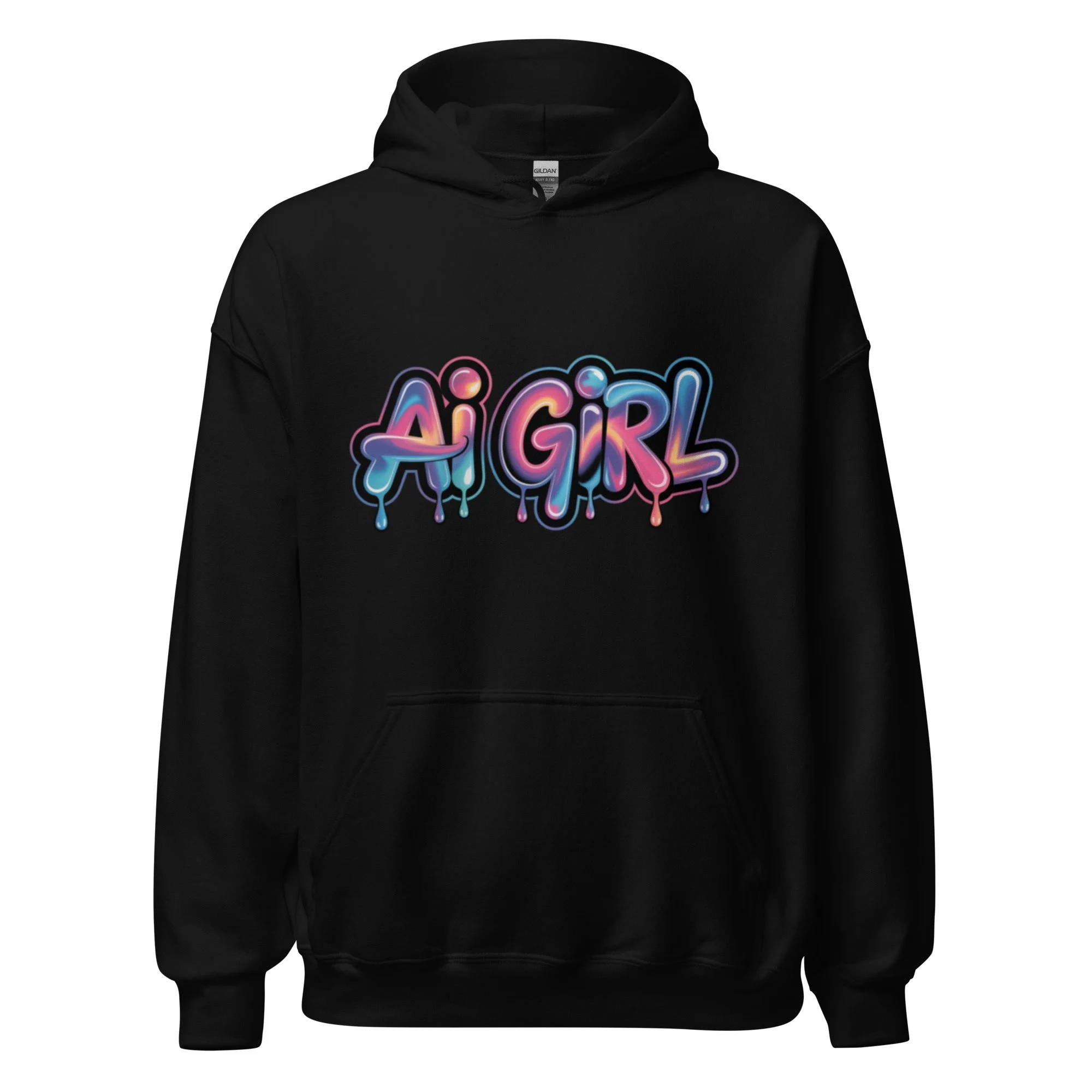 A vibrant, bubble-letter aesthetic meets a high-gloss digital finish. This design features "AI GIRL" in a fluid, melting gradient that drips with tech-infused style. It is a playful and polished addition to any modern AI clothing lineup. Everyone needs a cozy go-to hoodie to curl up in, so go for one that's soft, smooth, and stylish. It's the perfect choice for cooler evenings!