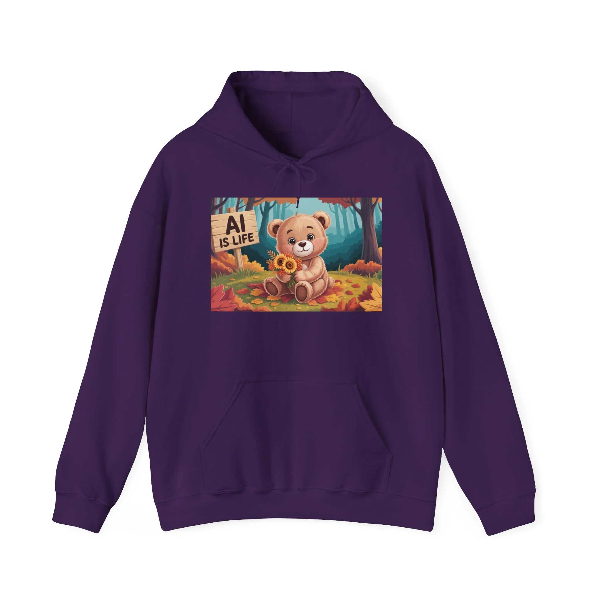 > The AI Is Life Bear Byte Tee captures pure joy with a cuddly bear surrounded by bright leaves. A sweet, cheerful addition to your AI clothing lineup for customers who love cute and cozy designs.