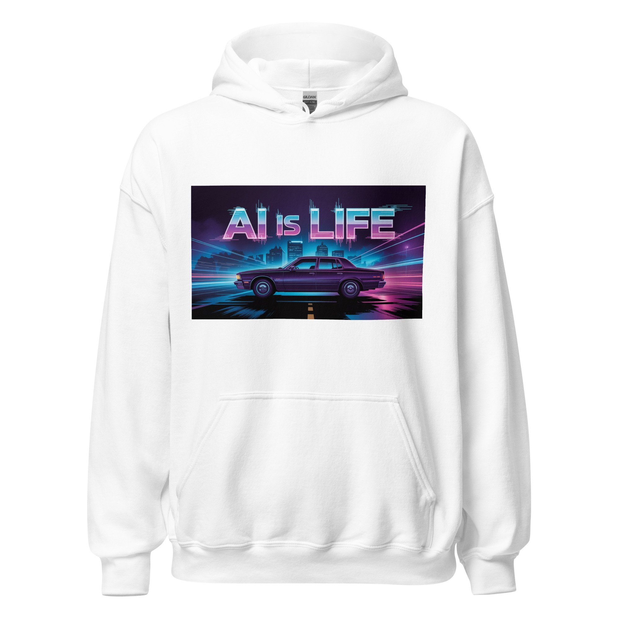 A neon-drenched metropolis rises against a deep indigo sky in this ultimate vaporwave tribute. This design brings a high-definition cyberpunk edge to the world of AI clothing. Everyone needs a cozy go-to hoodie to curl up in, so go for one that's soft, smooth, and stylish. It's the perfect choice for cooler evenings!