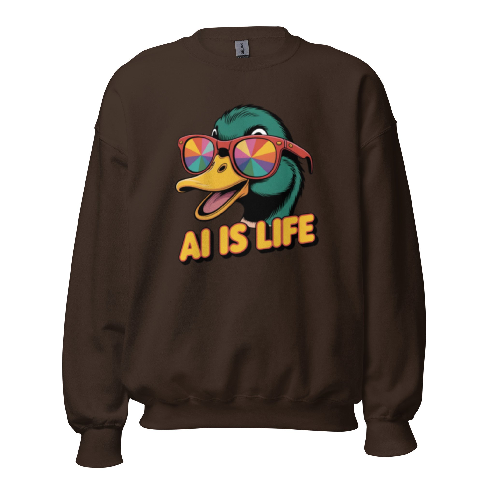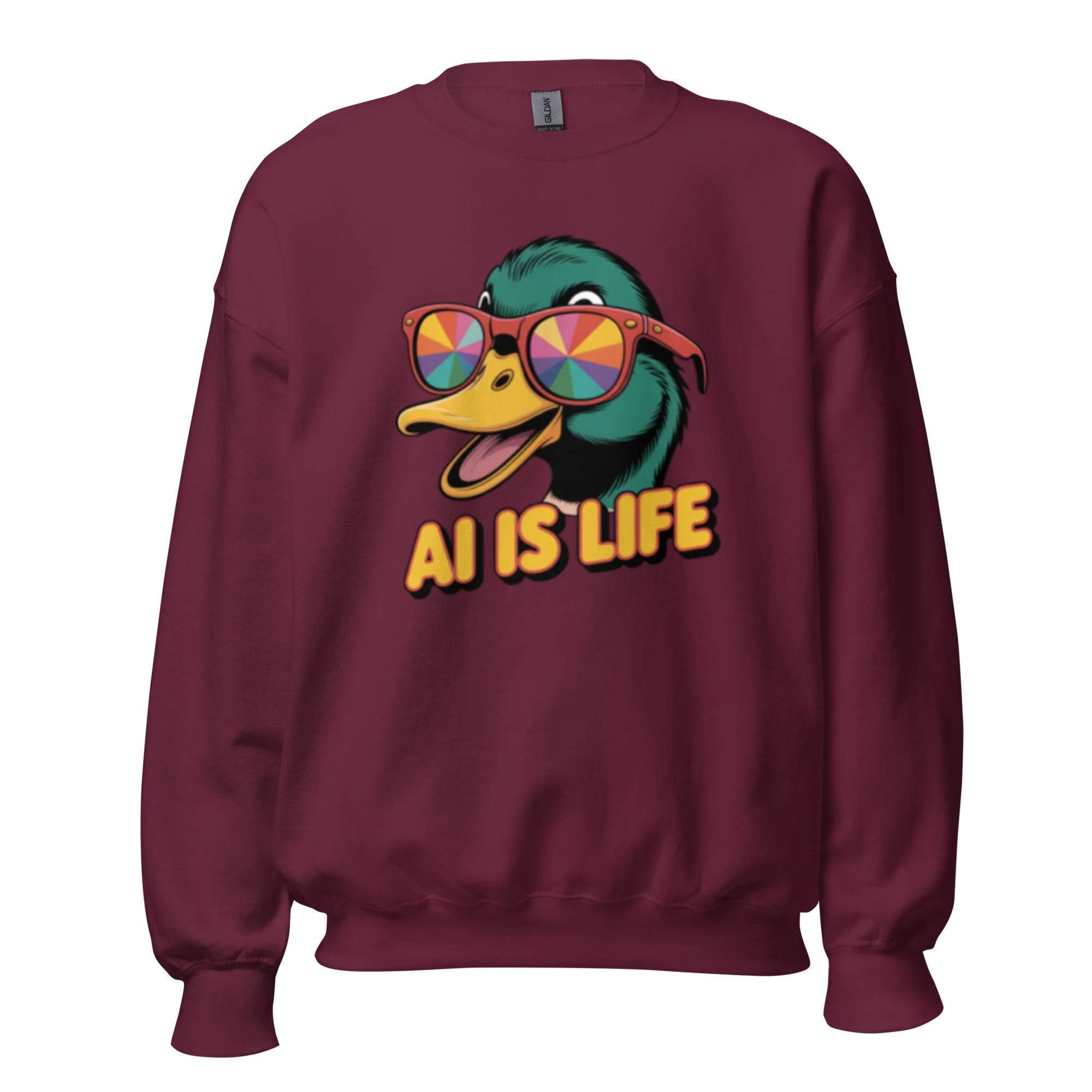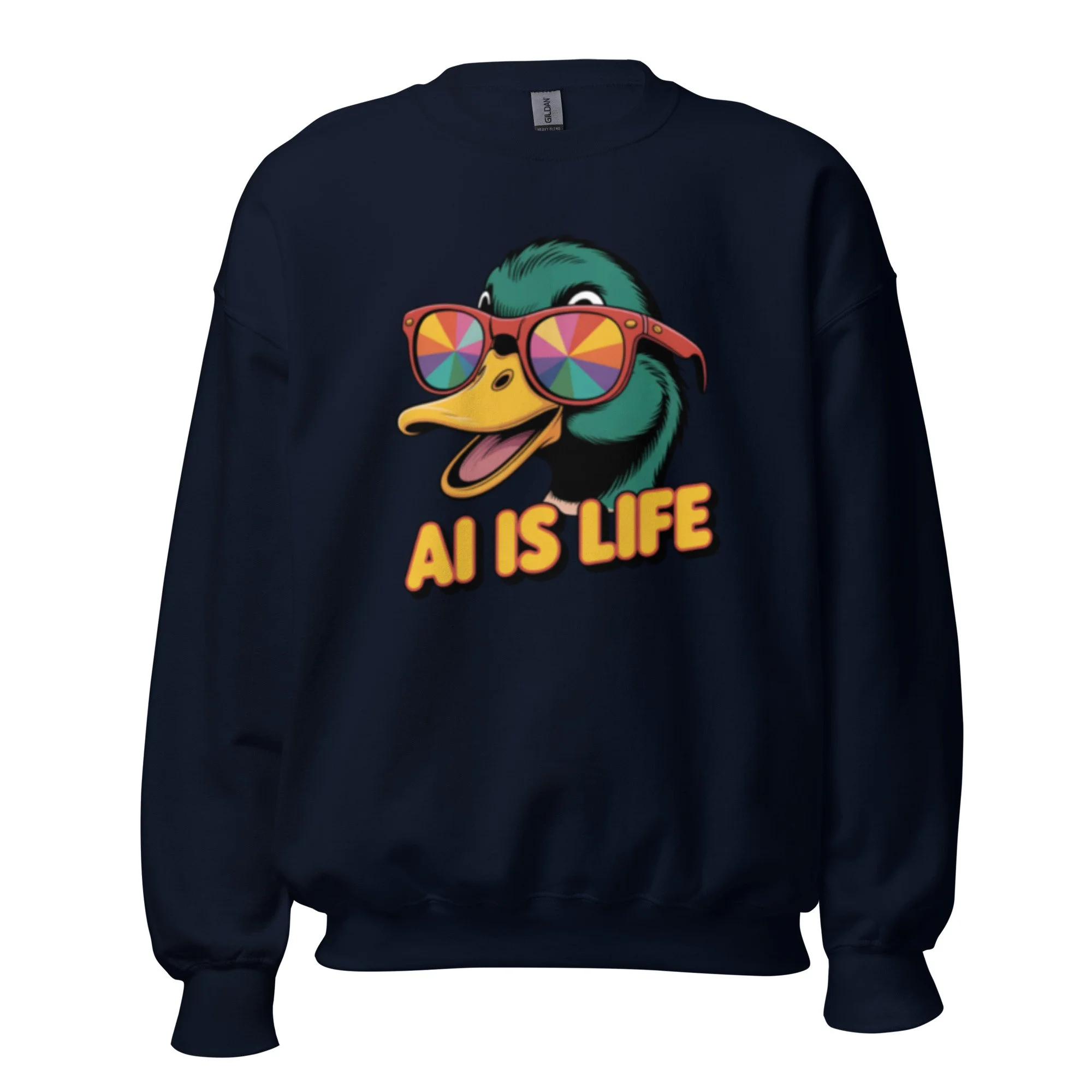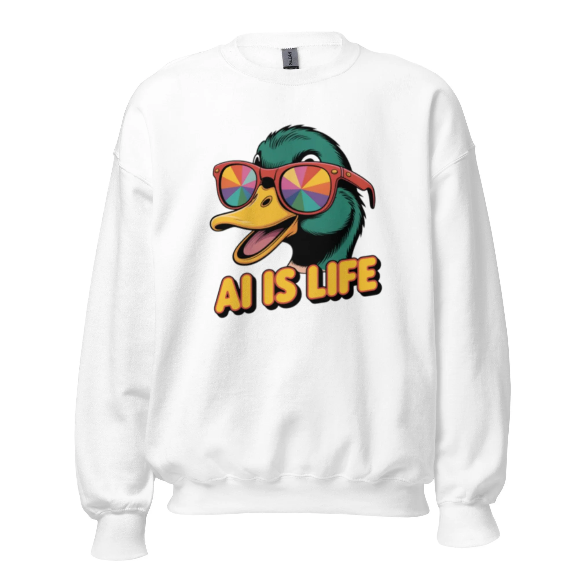 Infuse your wardrobe with a touch of surrealism through this high-contrast duck illustration, a perfect example of cutting-edge AI clothing. A sturdy and warm sweatshirt bound to keep you warm in the colder months. A pre-shrunk, classic fit sweater that’s made with air-jet spun yarn for a soft feel.