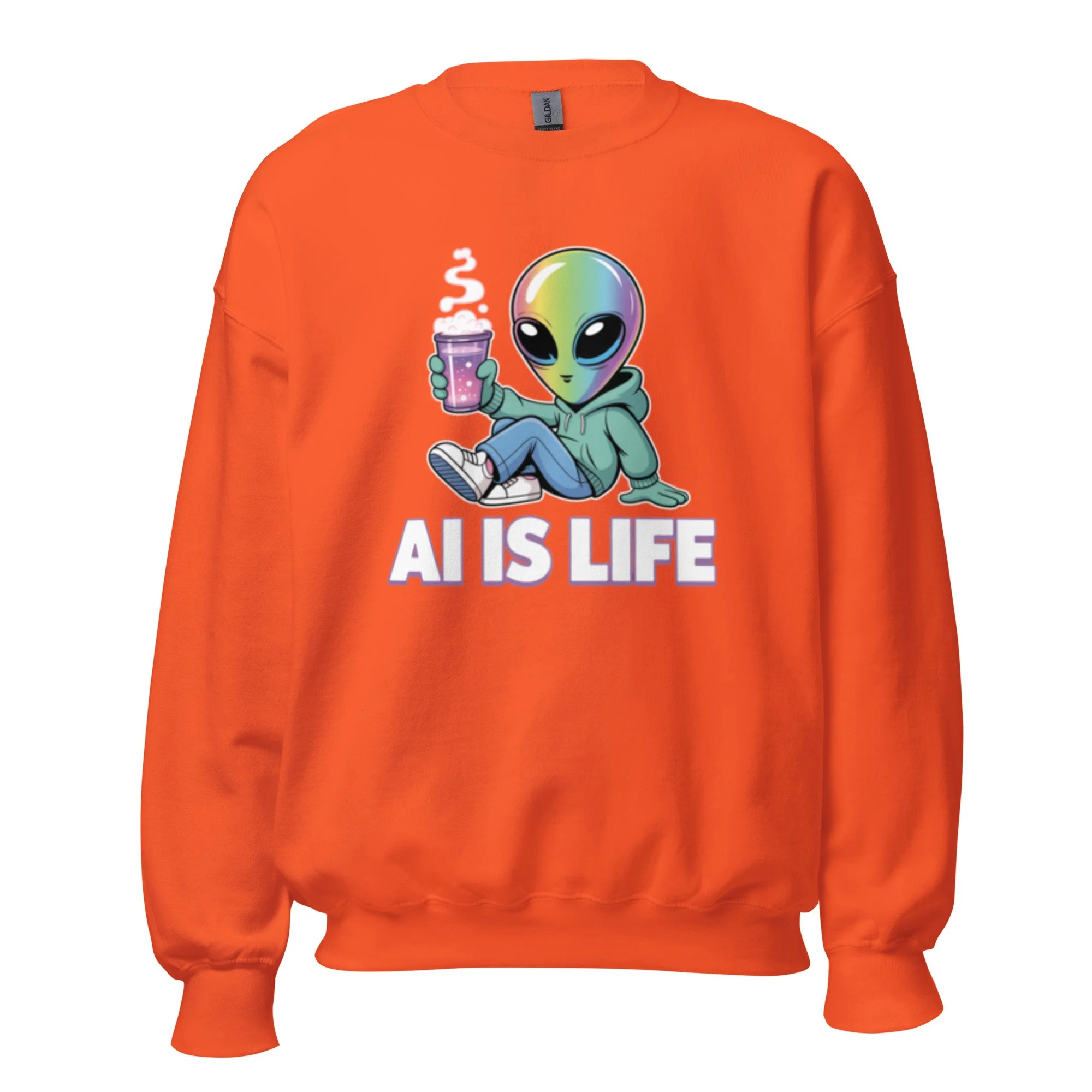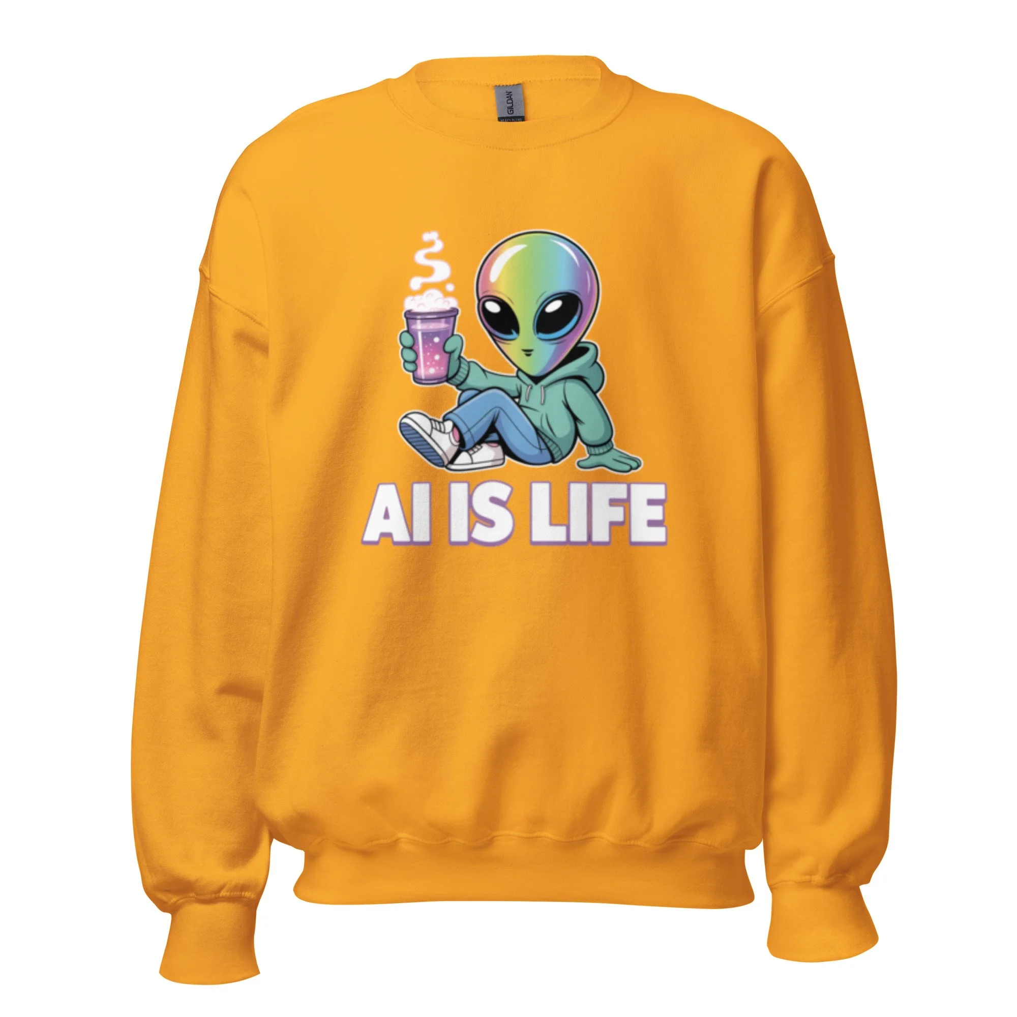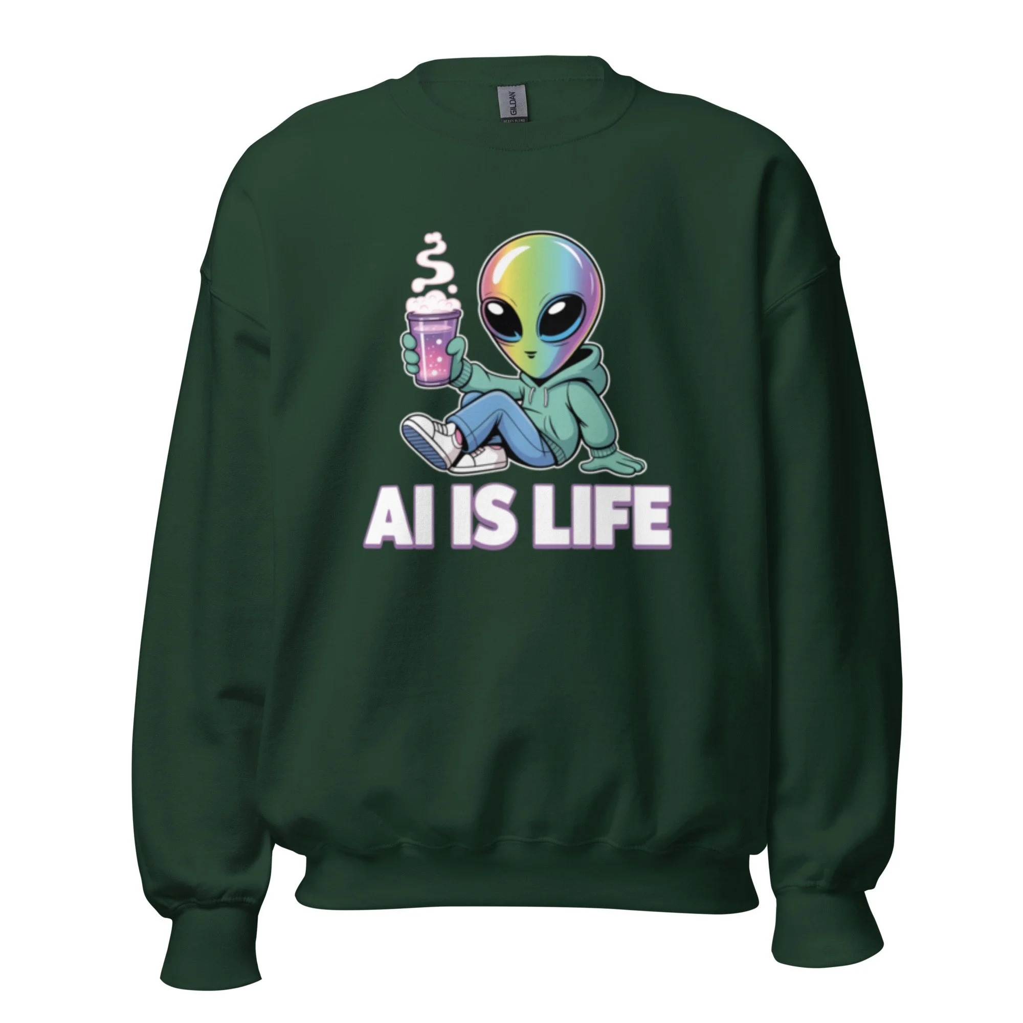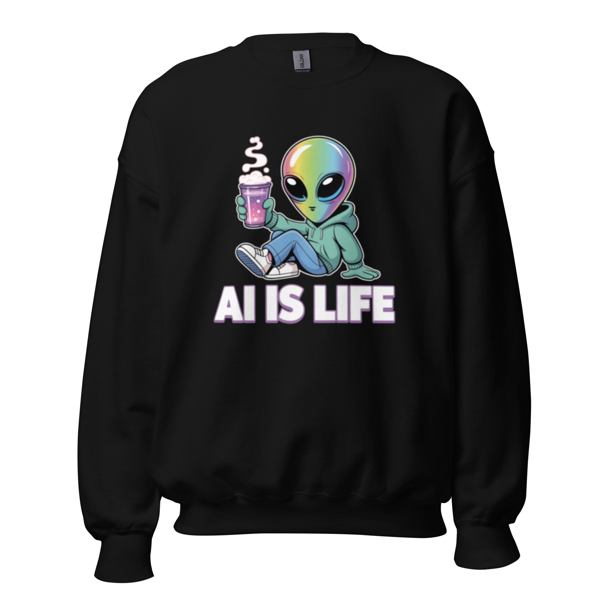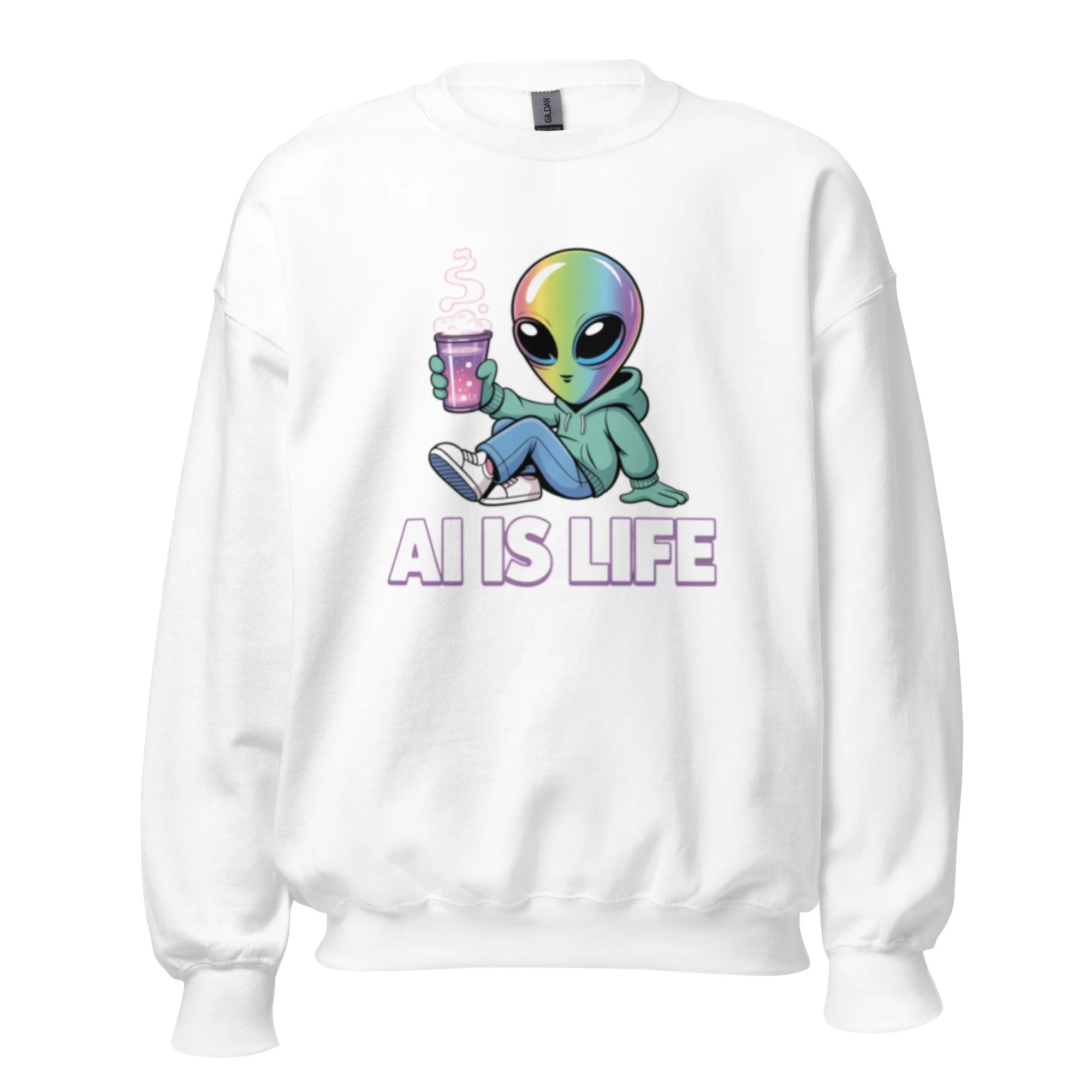 A chill iridescent alien sipping a cosmic brew brings a laid-back, extraterrestrial vibe to your wardrobe. This design is a psychedelic centerpiece for any modern AI clothing collection. A sturdy and warm sweatshirt bound to keep you warm in the colder months. A pre-shrunk, classic fit sweater that’s made with air-jet spun yarn for a soft feel.