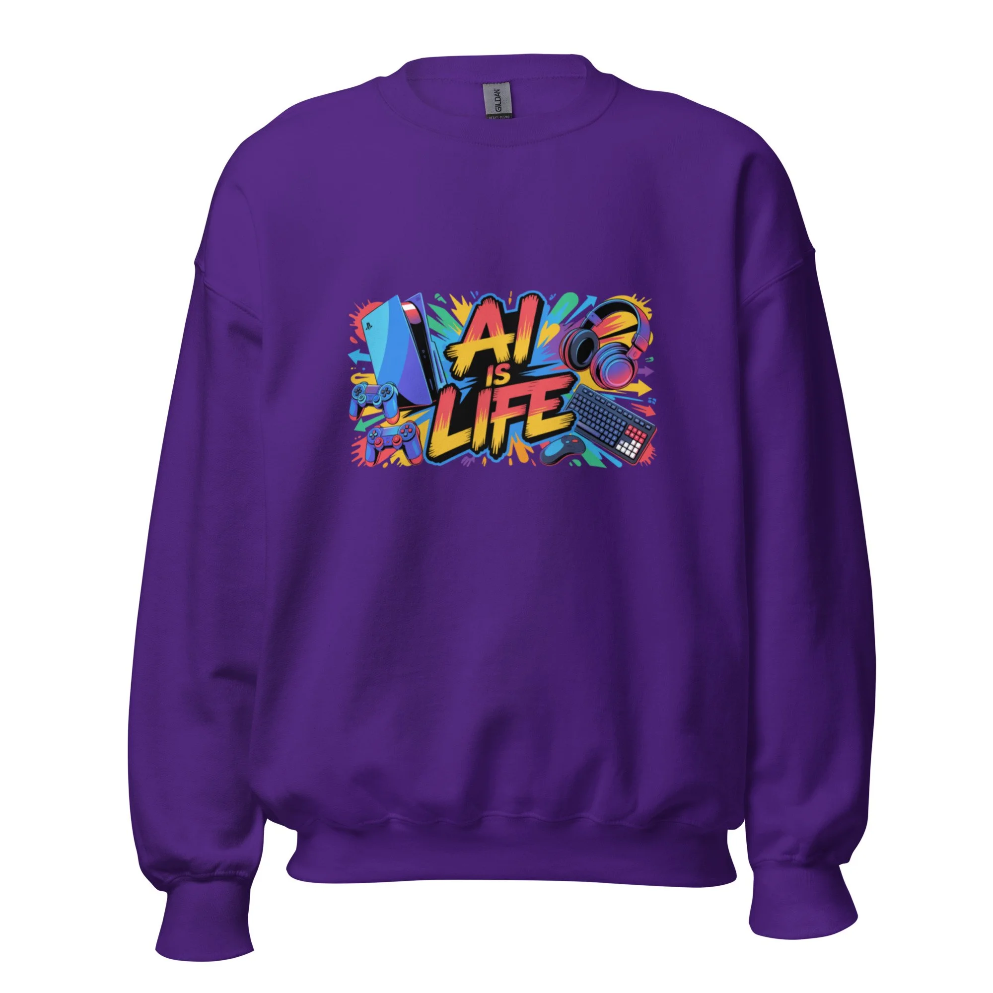 Level up your wardrobe with a design that captures the ultimate gamer’s dream. Featuring a high-end dual-monitor setup bathed in a radiant purple and teal glow, this graphic is a love letter to the late-night sessions and the immersive world of digital play. A sturdy and warm sweatshirt bound to keep you warm in the colder months. A pre-shrunk, classic fit sweater that’s made with air-jet spun yarn for a soft feel.