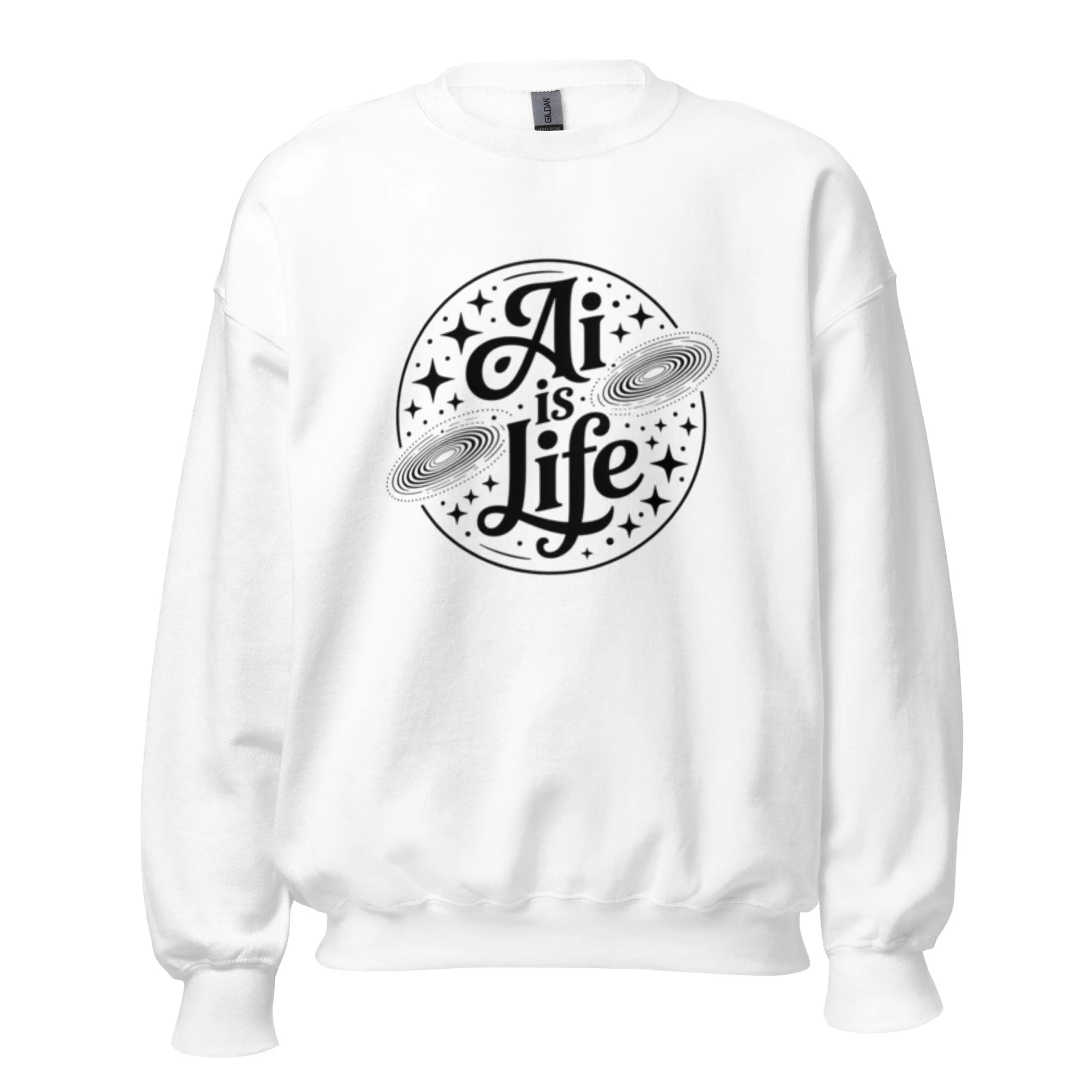 The classic circular emblem and script lettering offer a retro-cool aesthetic on a clean cream canvas. It is a perfect fusion of old-school charm and modern AI clothing. A sturdy and warm sweatshirt bound to keep you warm in the colder months. A pre-shrunk, classic fit sweater that’s made with air-jet spun yarn for a soft feel.
