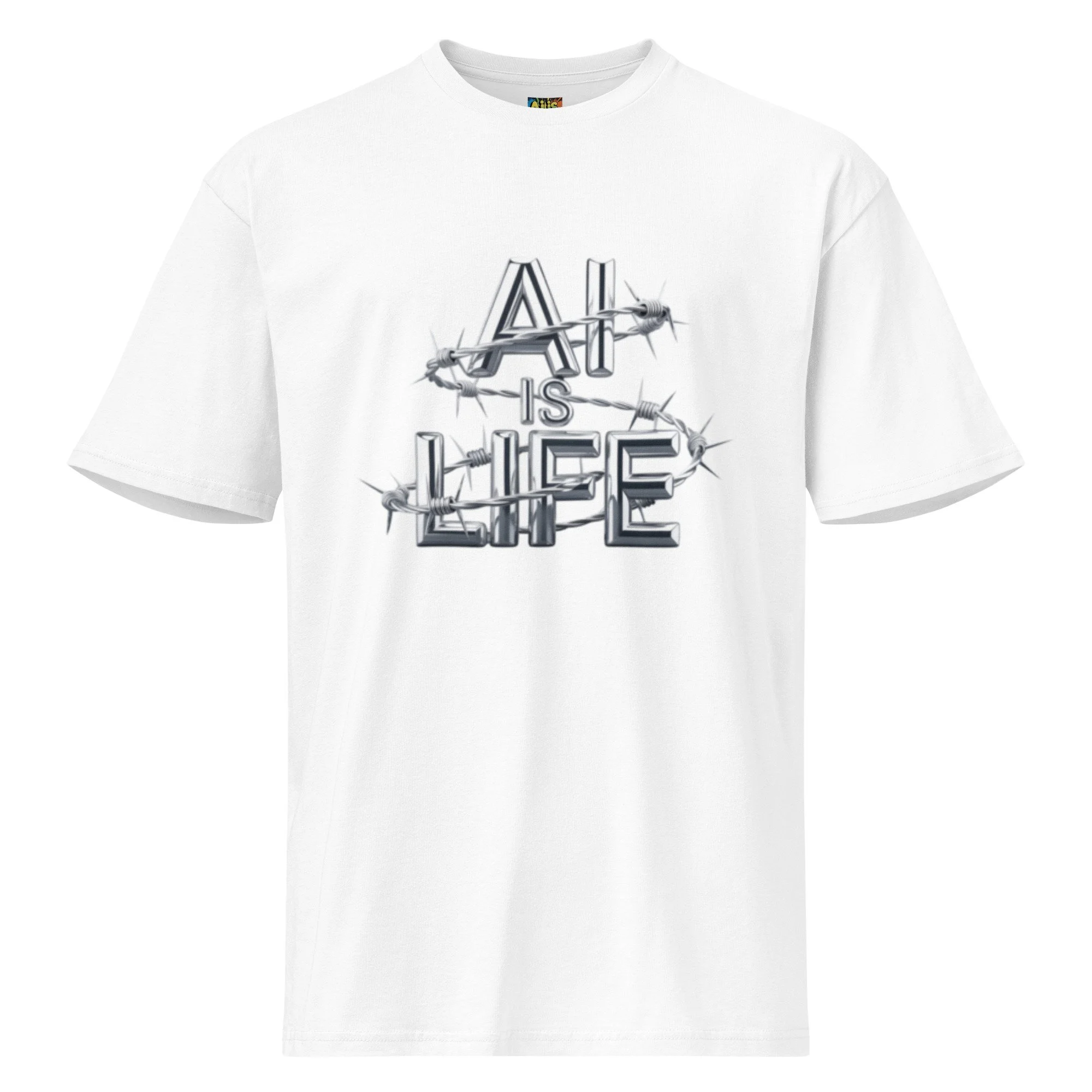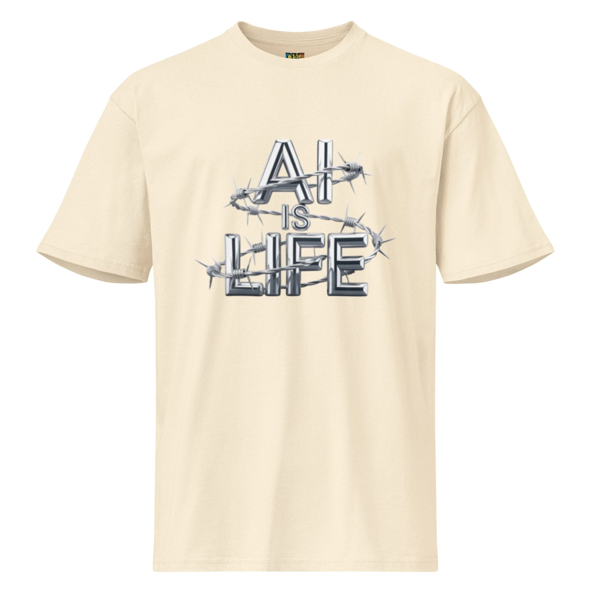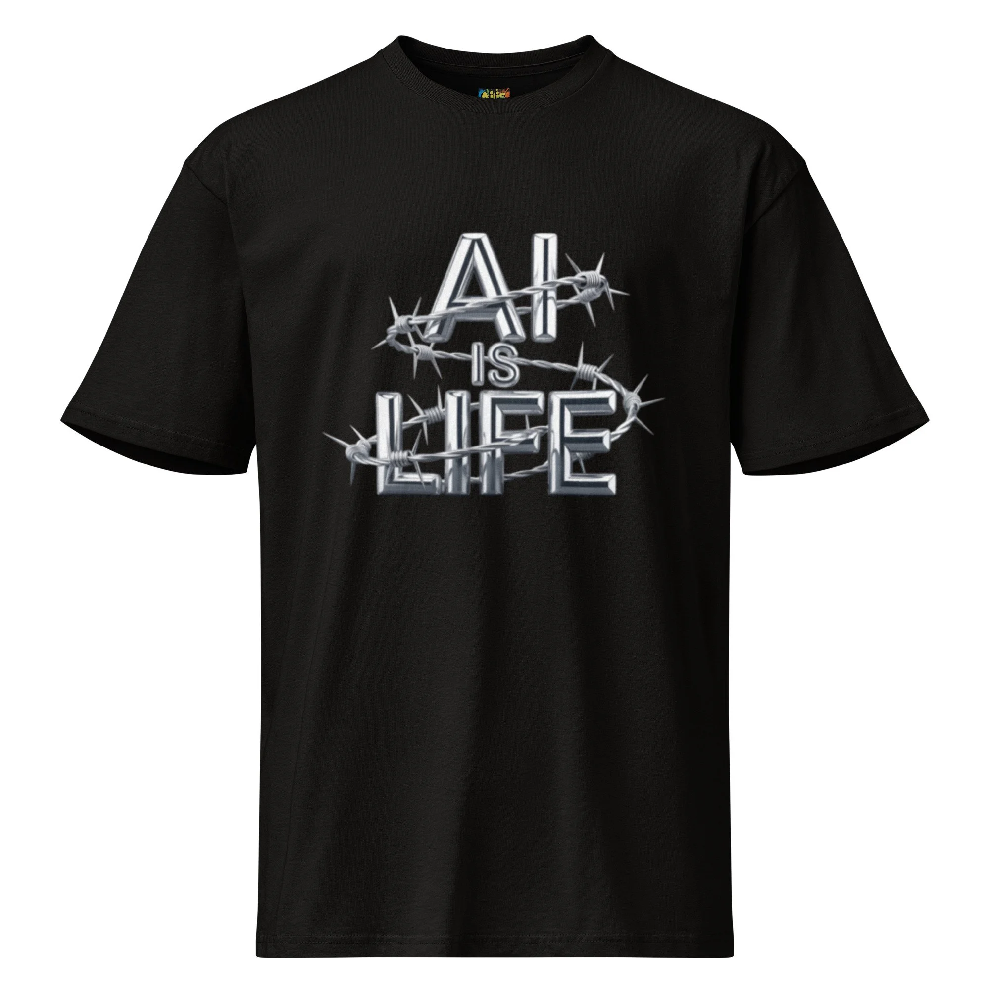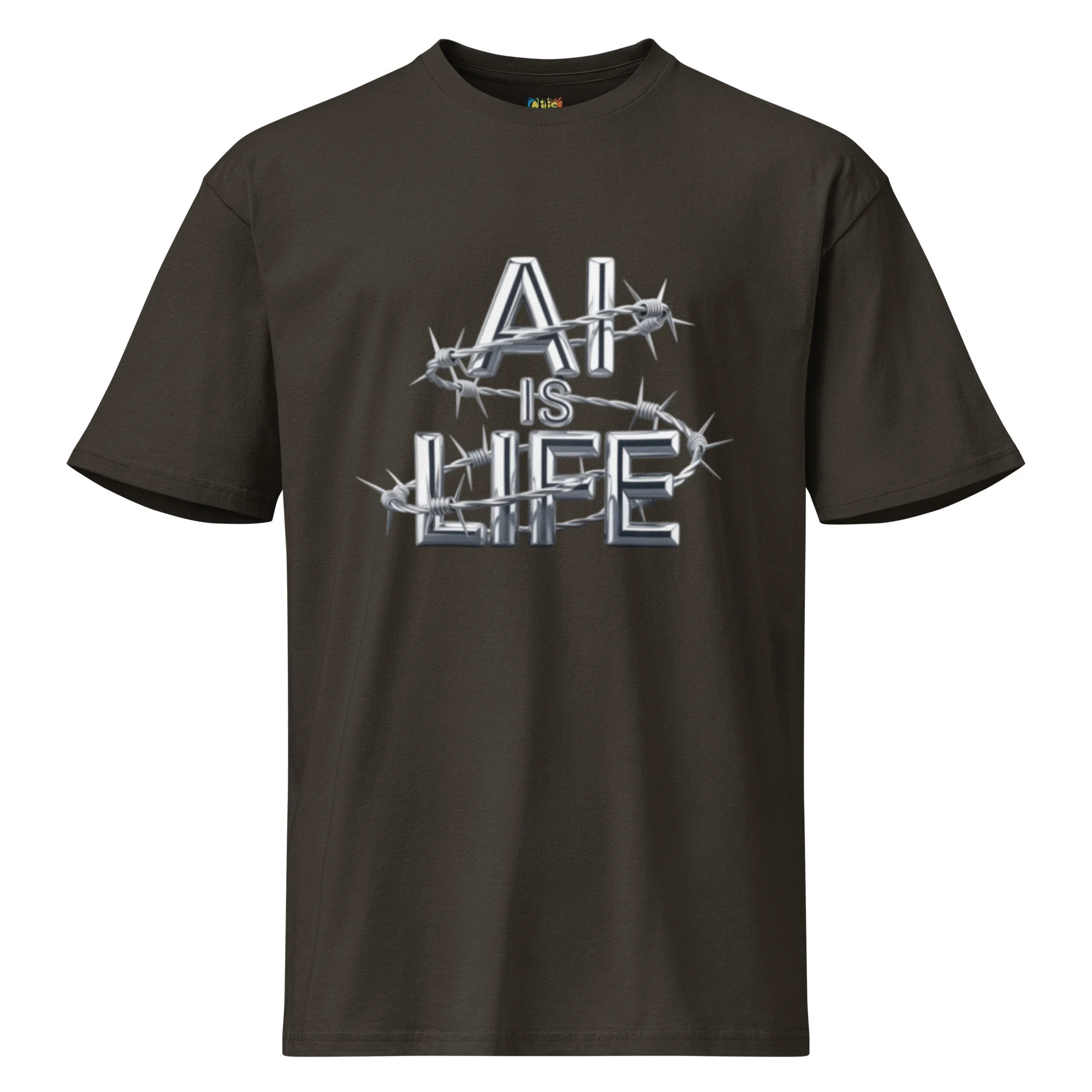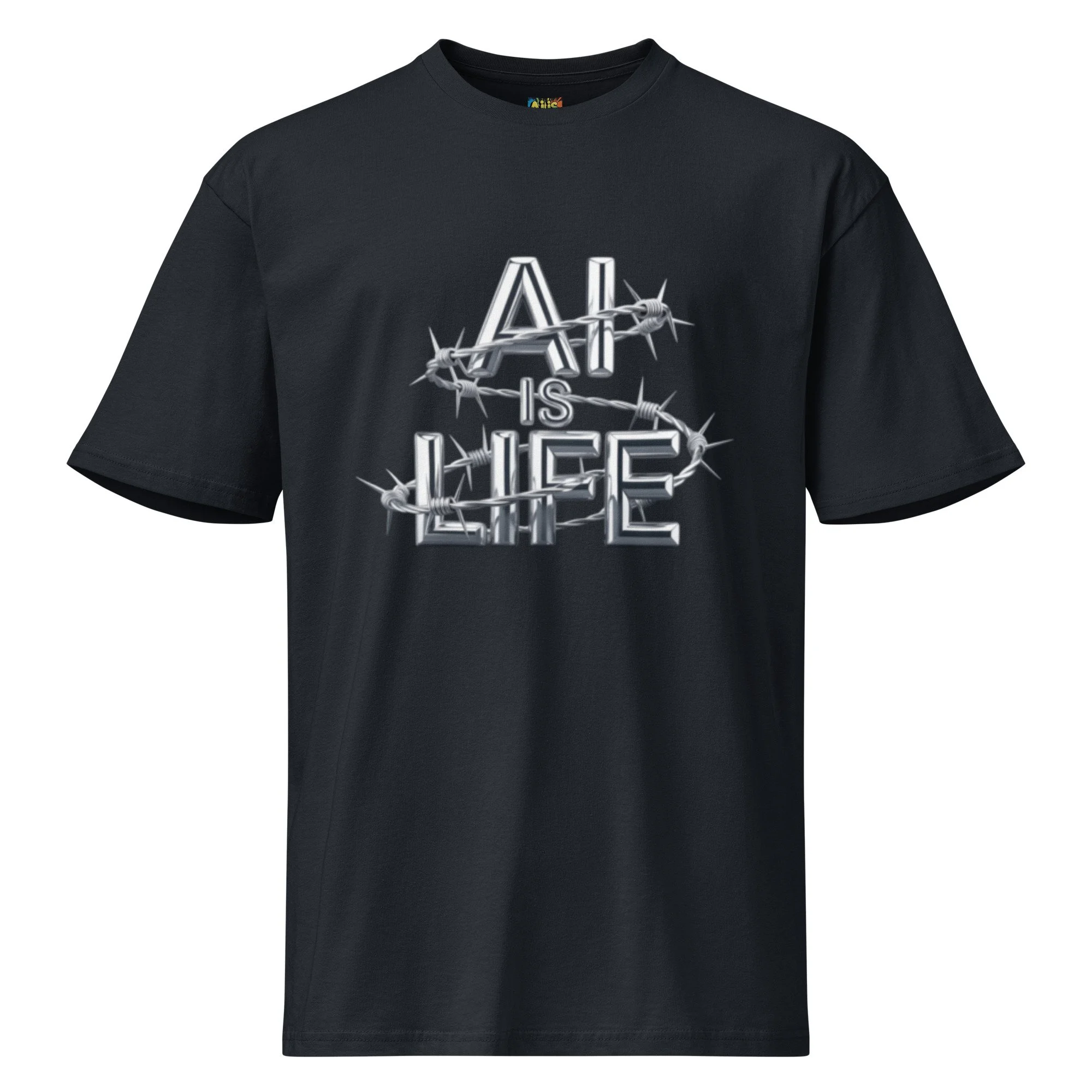 Industrial silver lettering is entwined with sharp barbed wire for a gritty, high-contrast look. This design brings a raw, underground edge to modern AI clothing. Want a tee that balances premium comfort with everyday versatility? Men’s Premium Short Sleeve Tee delivers a clean, classic fit with a soft yet durable feel. Designed with a smooth surface and reinforced construction, it’s perfect for daily wear, layering, and high-quality prints, a reliable go-to you’ll reach for again and again.