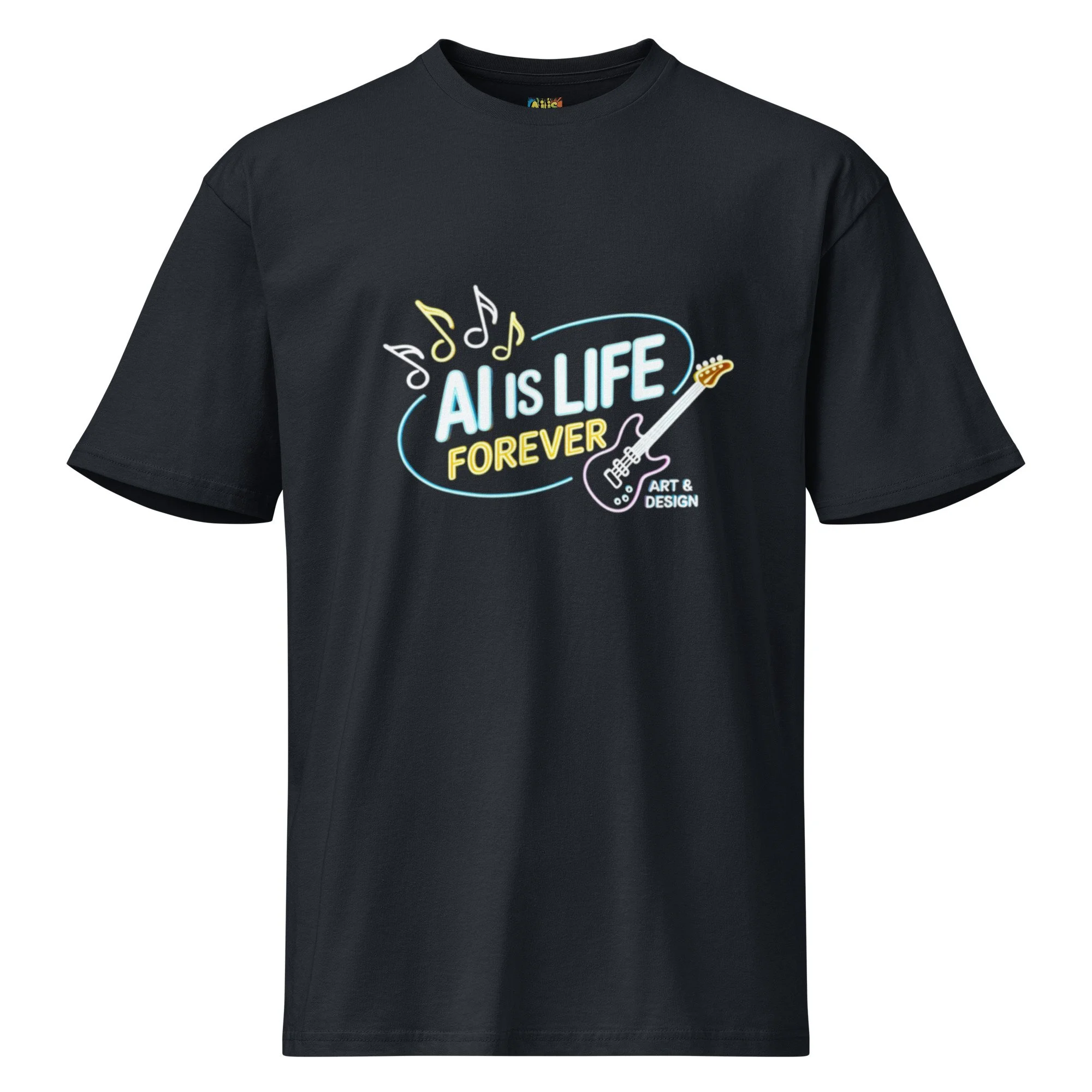Electric blue accents and a neon guitar motif bring a high-voltage musical energy to your wardrobe. This design is a loud, artistic celebration of the permanent impact of AI clothing. Want a tee that balances premium comfort with everyday versatility? Men’s Premium Short Sleeve Tee delivers a clean, classic fit with a soft yet durable feel. Designed with a smooth surface and reinforced construction, it’s perfect for daily wear, layering, and high-quality prints, a reliable go-to you’ll reach for again and again.