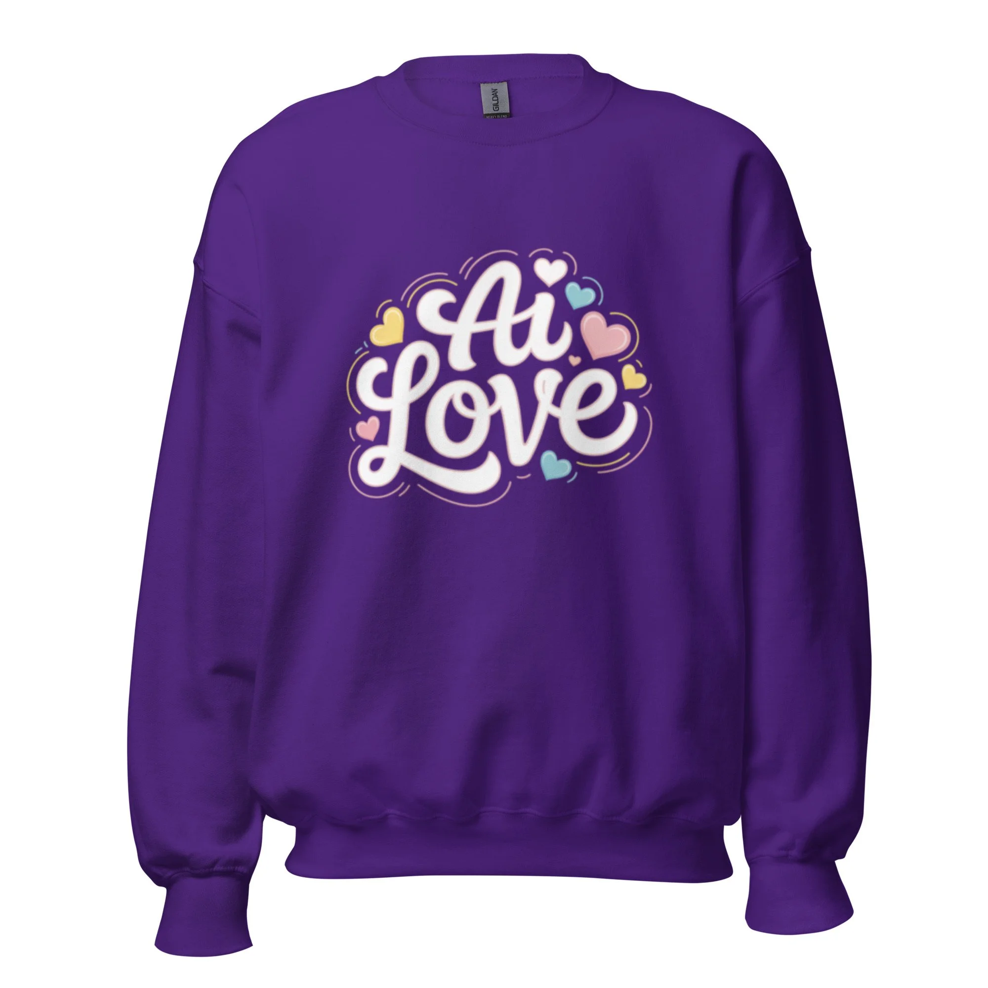 Soft, bubbly typography and floating hearts create a charming and affectionate digital aesthetic. This design is a lovable addition to any modern AI clothing collection. A sturdy and warm sweatshirt bound to keep you warm in the colder months. A pre-shrunk, classic fit sweater that’s made with air-jet spun yarn for a soft feel.
