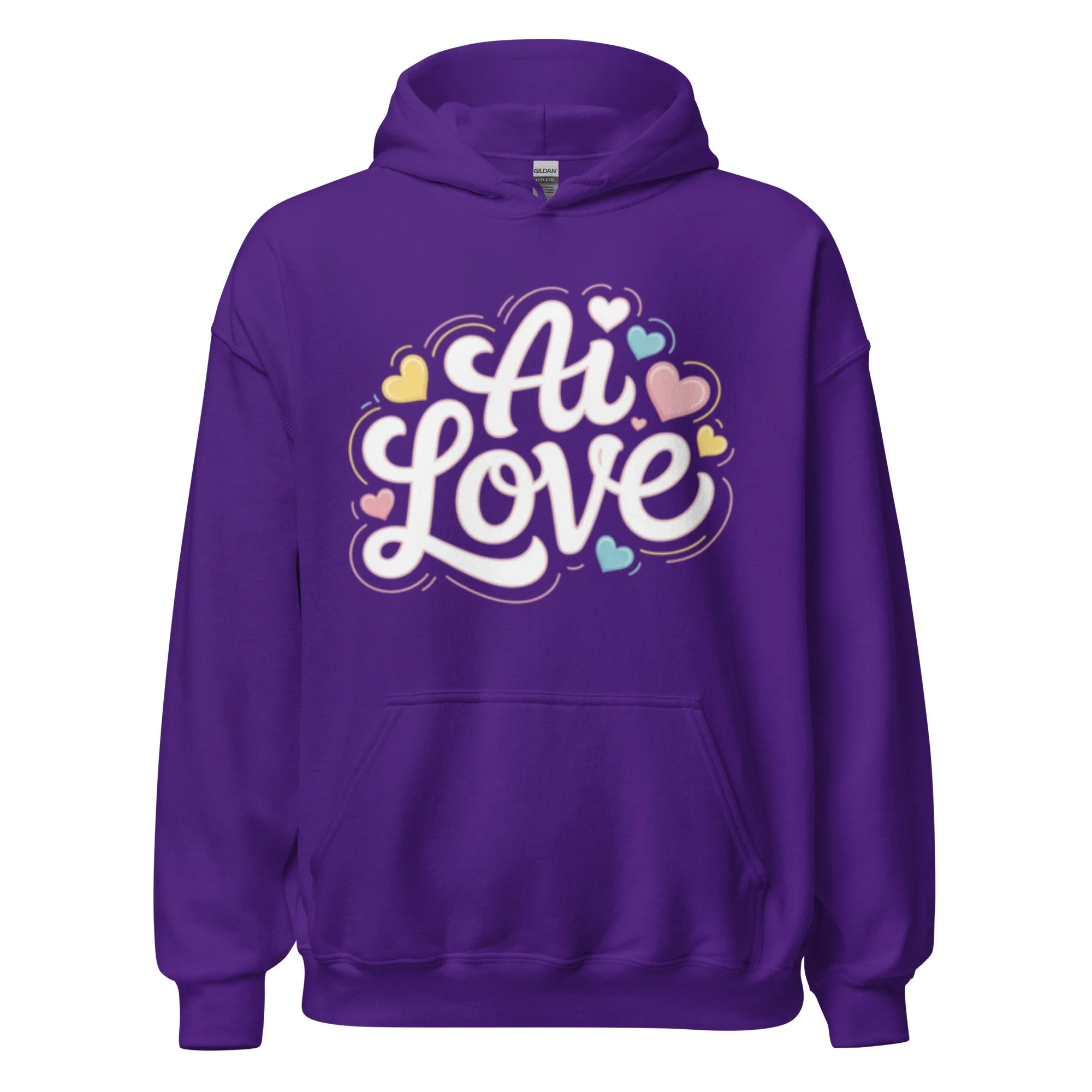 Soft, bubbly typography and floating hearts create a charming and affectionate digital aesthetic. This design is a lovable addition to any modern AI clothing collection. Everyone needs a cozy go-to hoodie to curl up in, so go for one that's soft, smooth, and stylish. It's the perfect choice for cooler evenings!