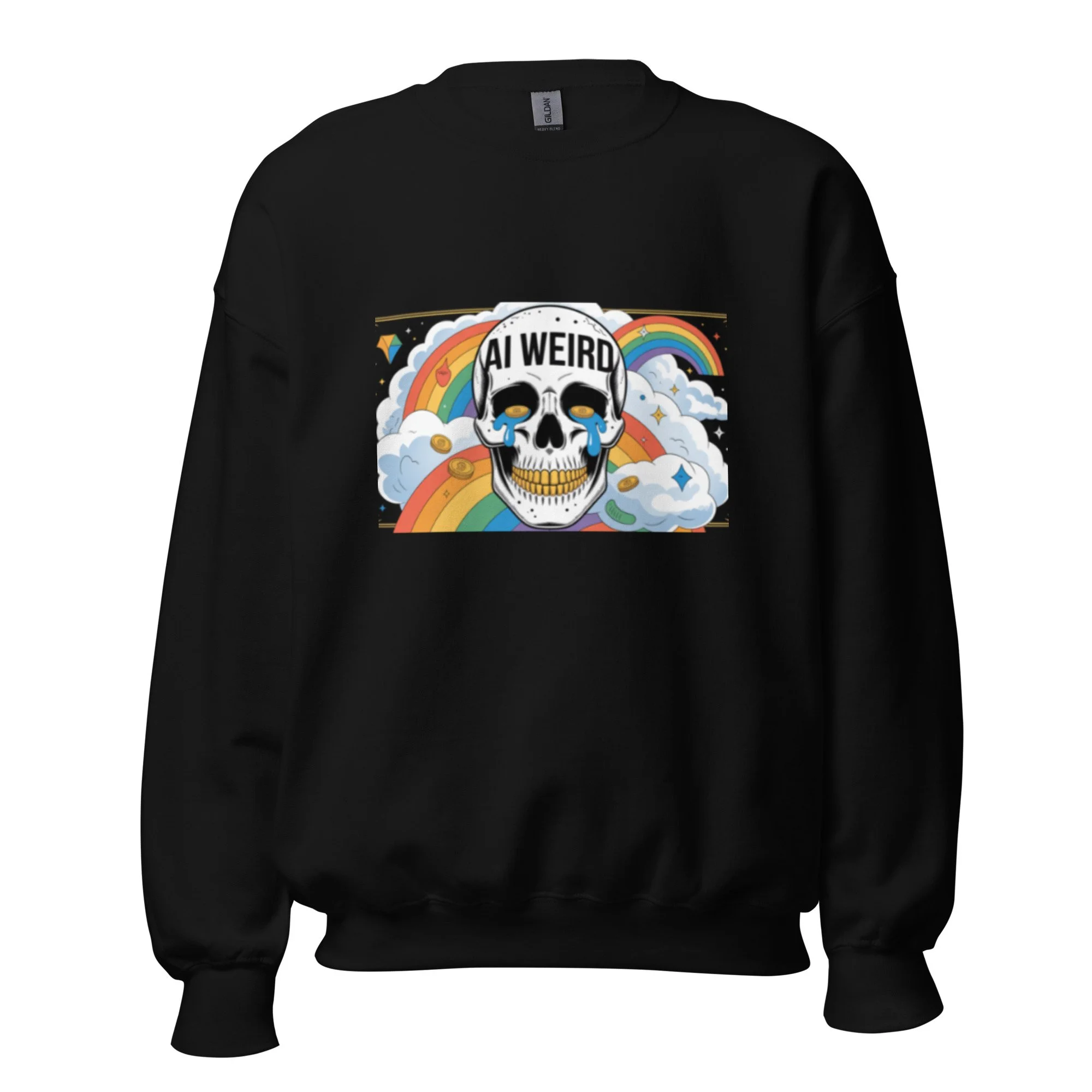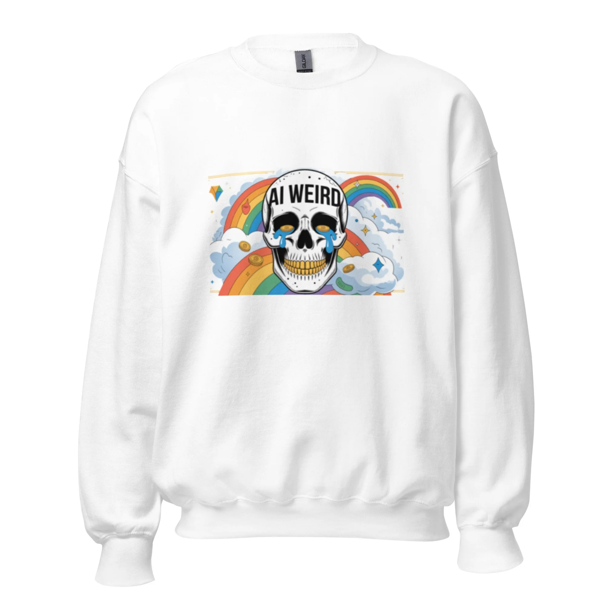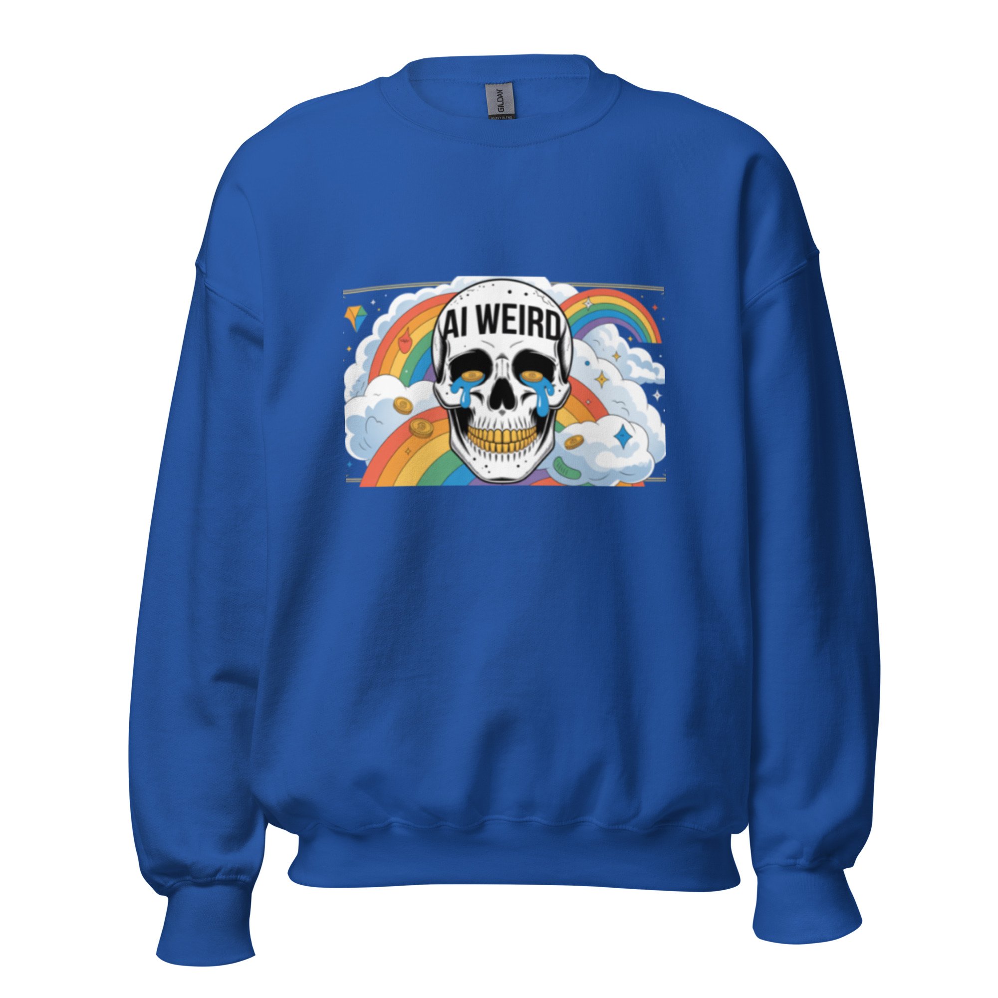 This design features a gold-toothed skull and teary-eyed aesthetics for a unique take on modern AI clothing. A sturdy and warm sweatshirt bound to keep you warm in the colder months. A pre-shrunk, classic fit sweater that’s made with air-jet spun yarn for a soft feel.