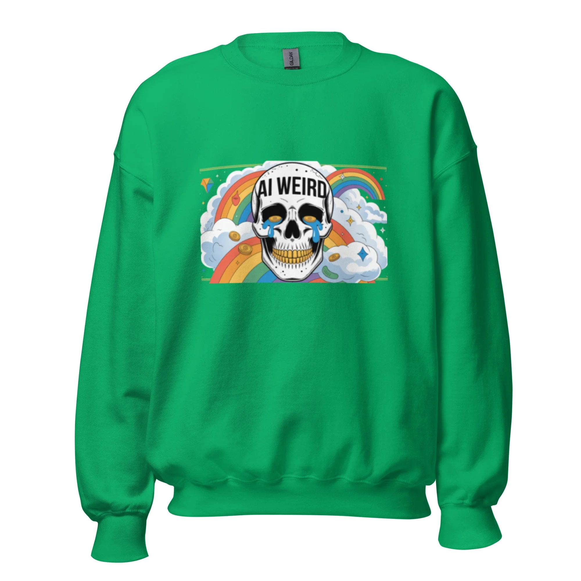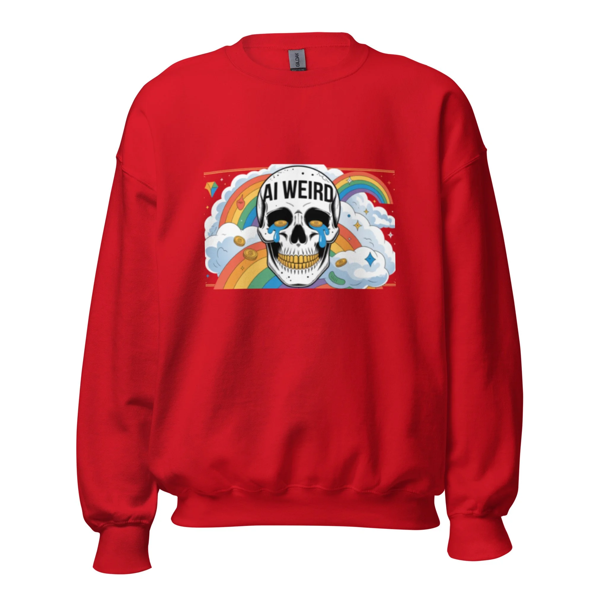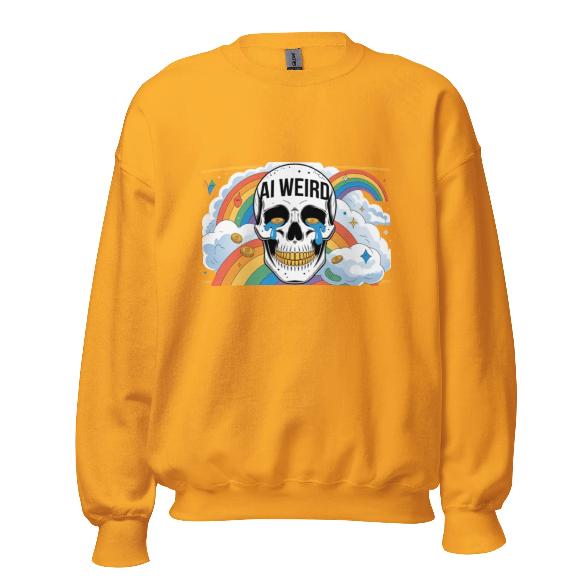 This design features a gold-toothed skull and teary-eyed aesthetics for a unique take on modern AI clothing. A sturdy and warm sweatshirt bound to keep you warm in the colder months. A pre-shrunk, classic fit sweater that’s made with air-jet spun yarn for a soft feel.