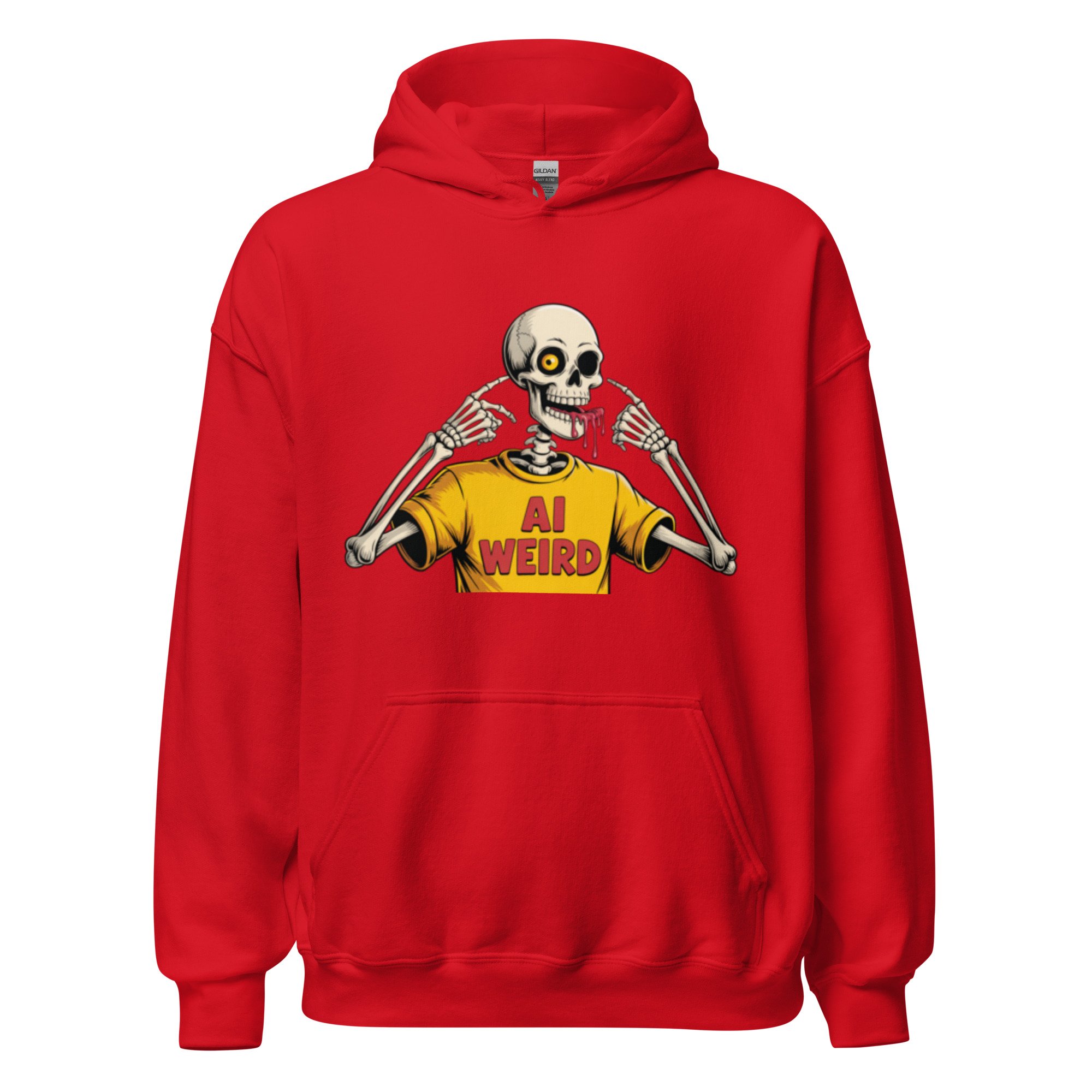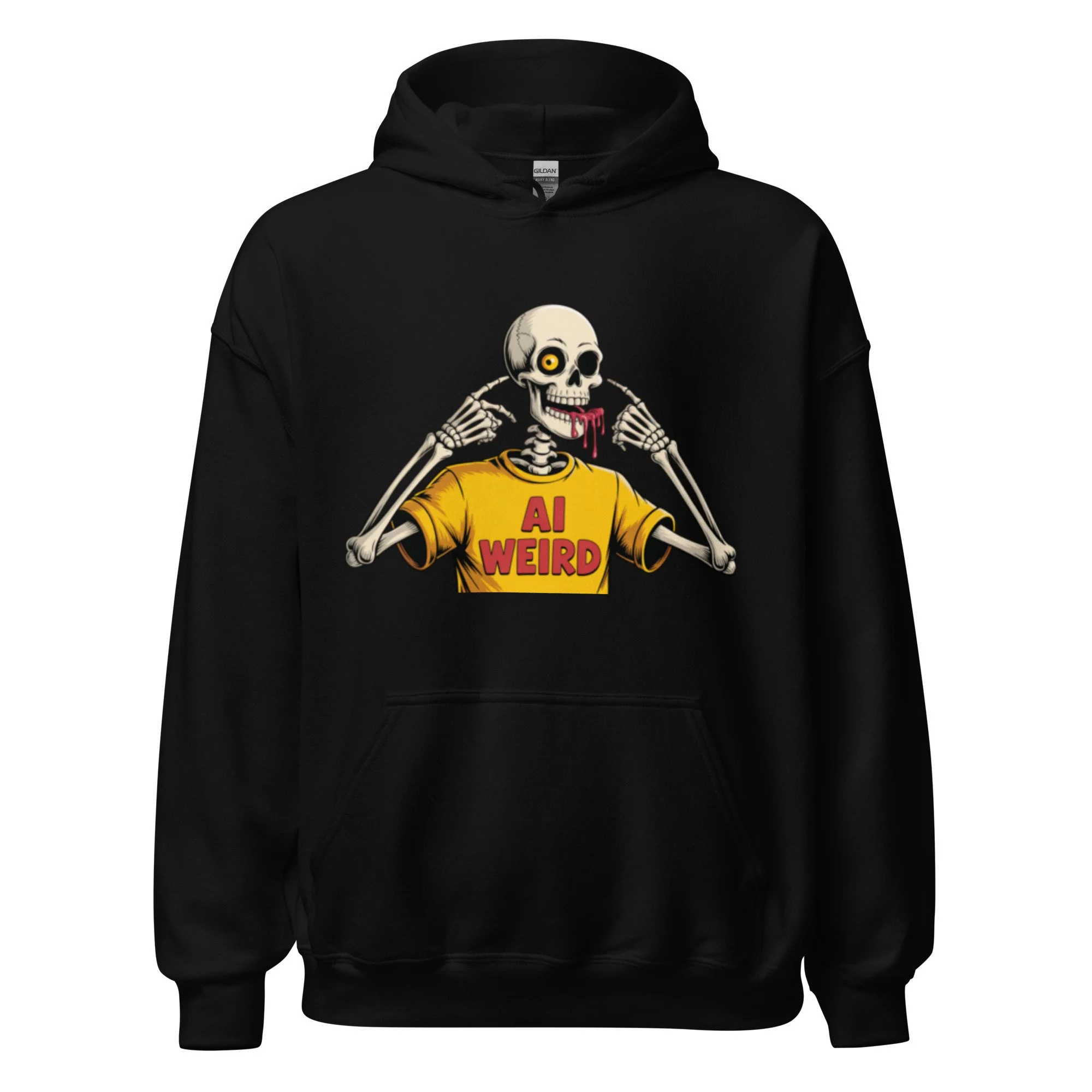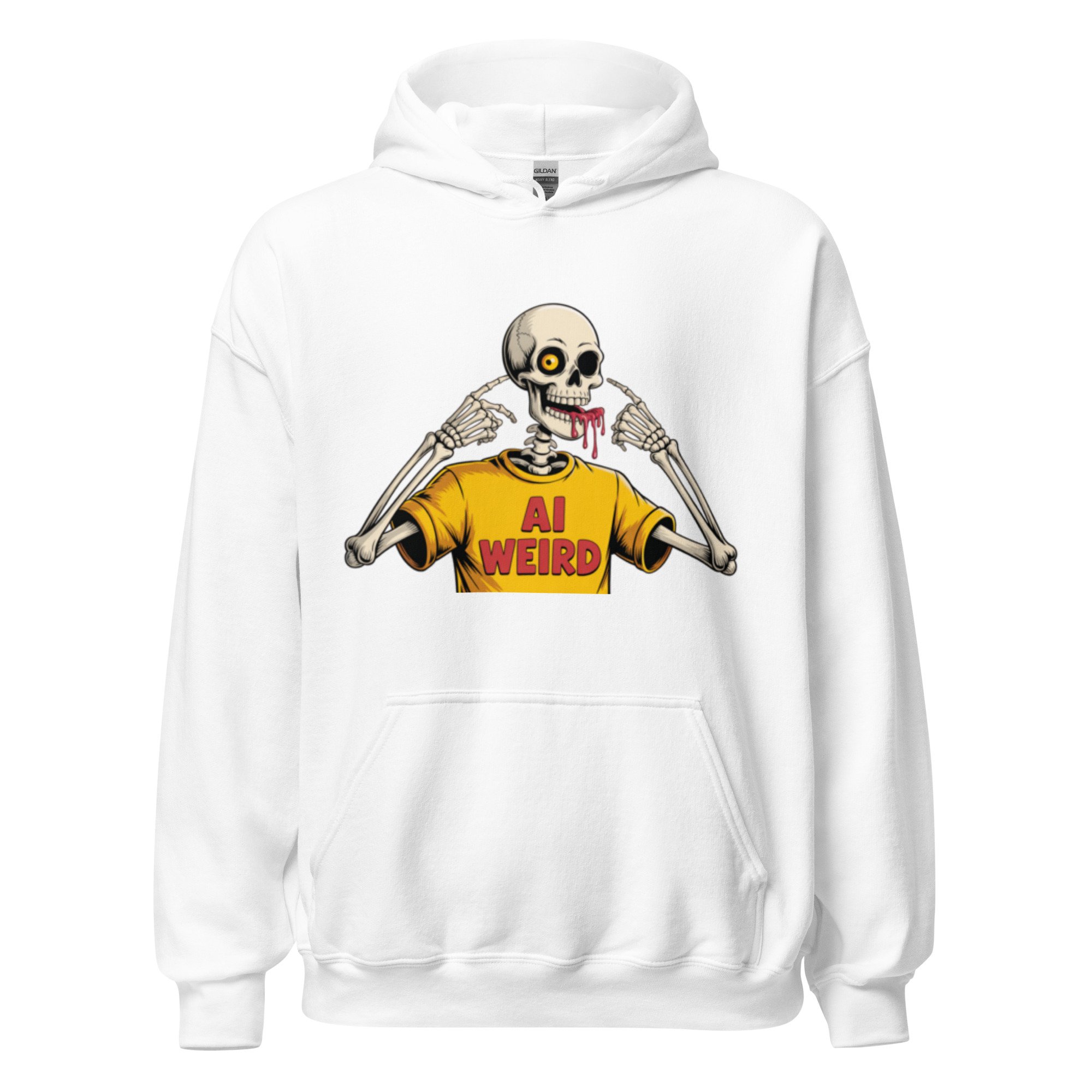 A surreal, bone-chilling graphic that leans into the "uncanny valley" of digital creation. Featuring a skeleton wearing its own "AI WEIRD" merch, this design is a meta-commentary on the strange and wonderful outputs of the machine. Everyone needs a cozy go-to hoodie to curl up in, so go for one that's soft, smooth, and stylish. It's the perfect choice for cooler evenings!
