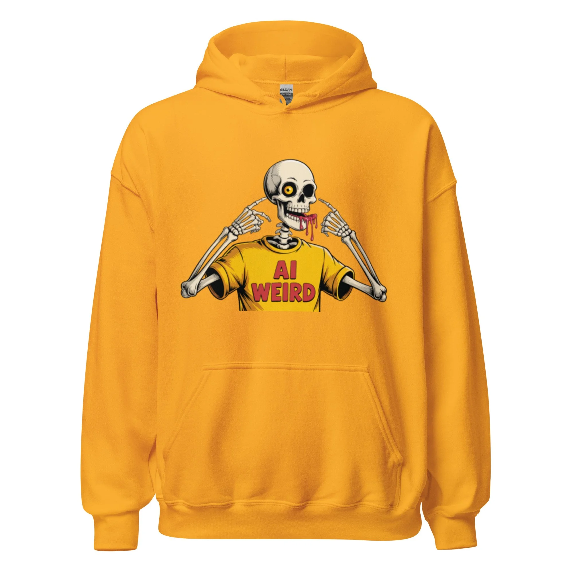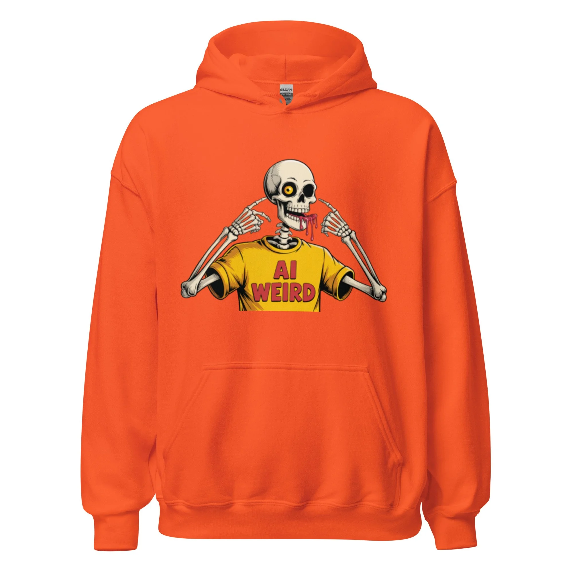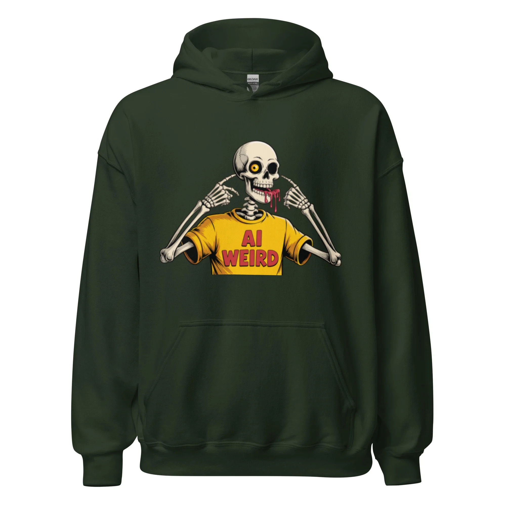 A surreal, bone-chilling graphic that leans into the "uncanny valley" of digital creation. Featuring a skeleton wearing its own "AI WEIRD" merch, this design is a meta-commentary on the strange and wonderful outputs of the machine. Everyone needs a cozy go-to hoodie to curl up in, so go for one that's soft, smooth, and stylish. It's the perfect choice for cooler evenings!