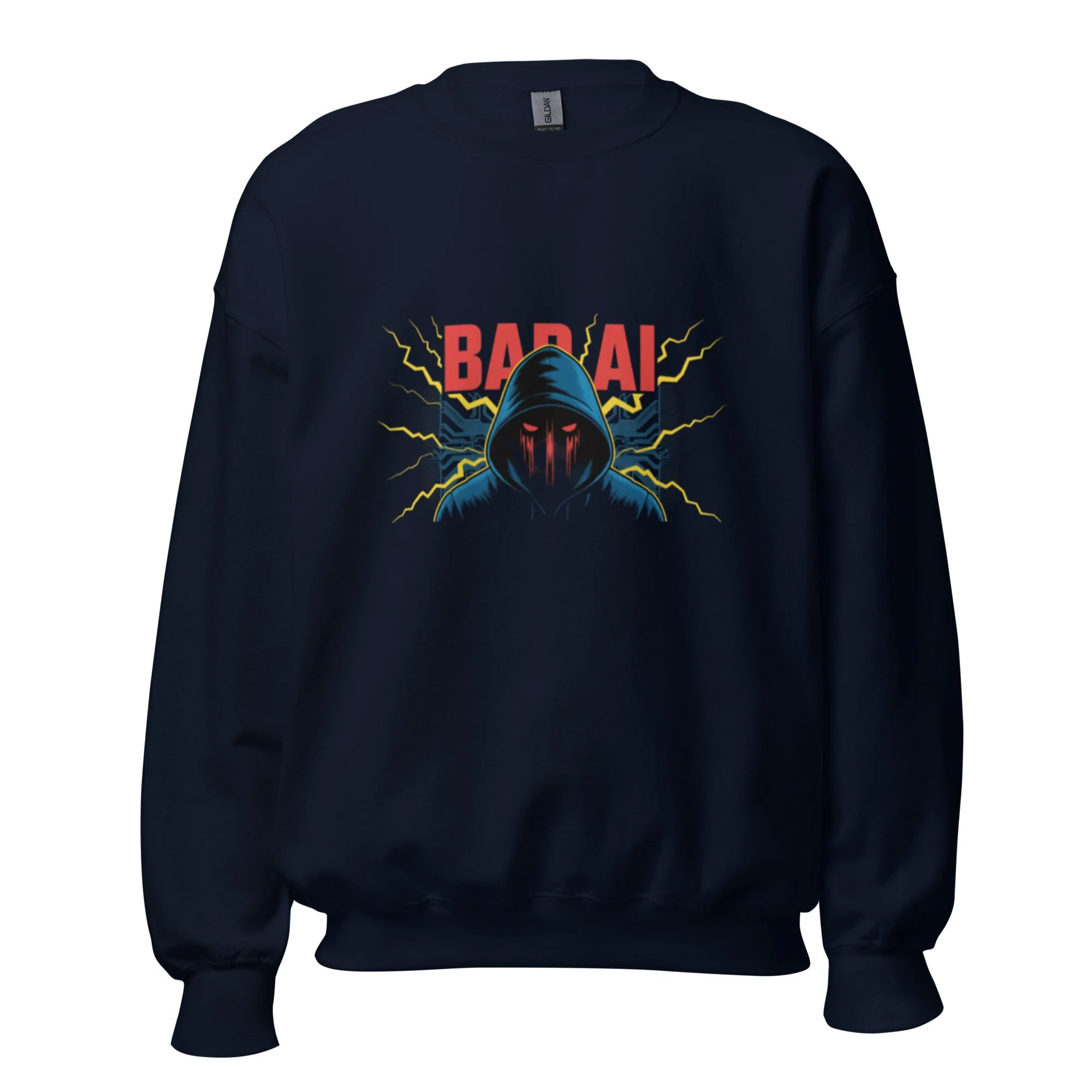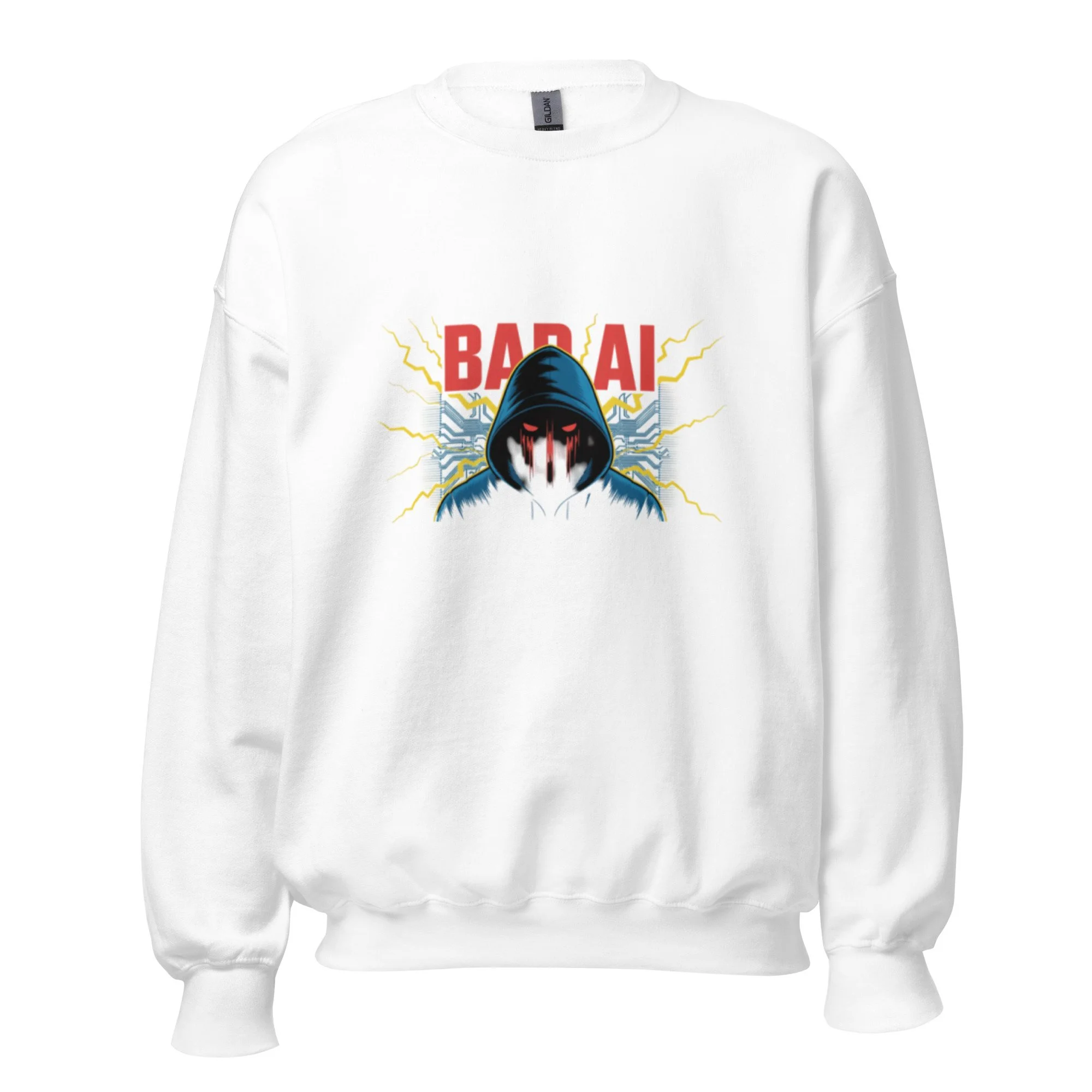 This piece of AI clothing features a hooded specter that embodies the silent strength of a sentient network. A sturdy and warm sweatshirt bound to keep you warm in the colder months. A pre-shrunk, classic fit sweater that’s made with air-jet spun yarn for a soft feel.